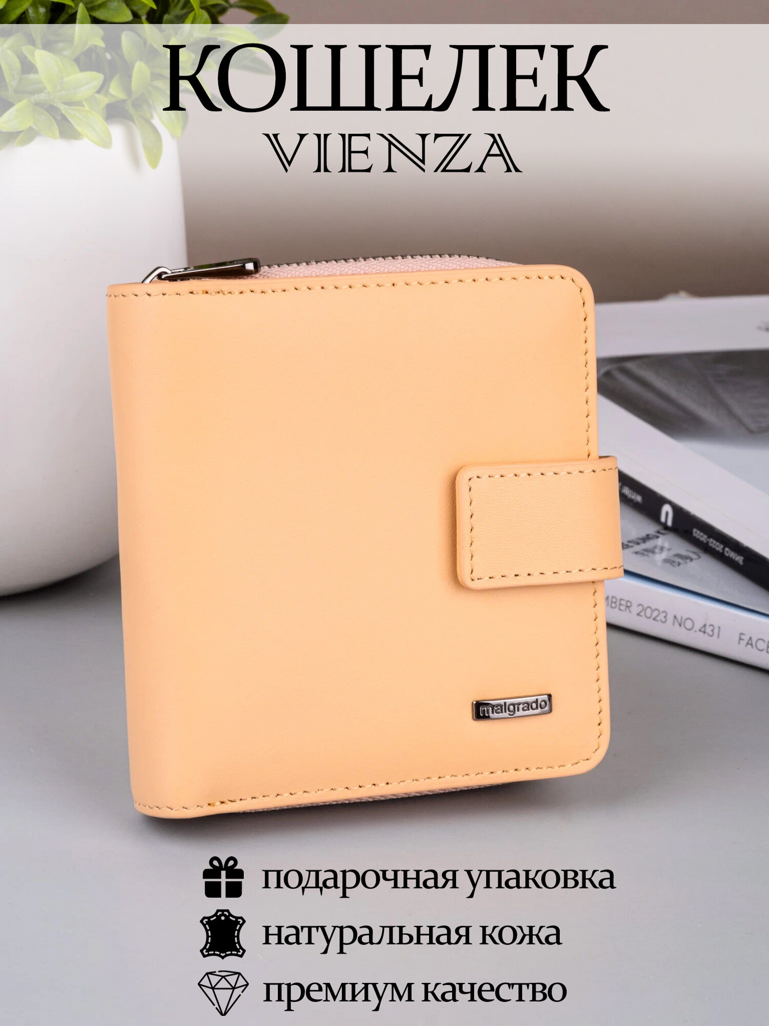 Кошелек VIENZA, фактура матовая, гладкая, бежевый интересное: