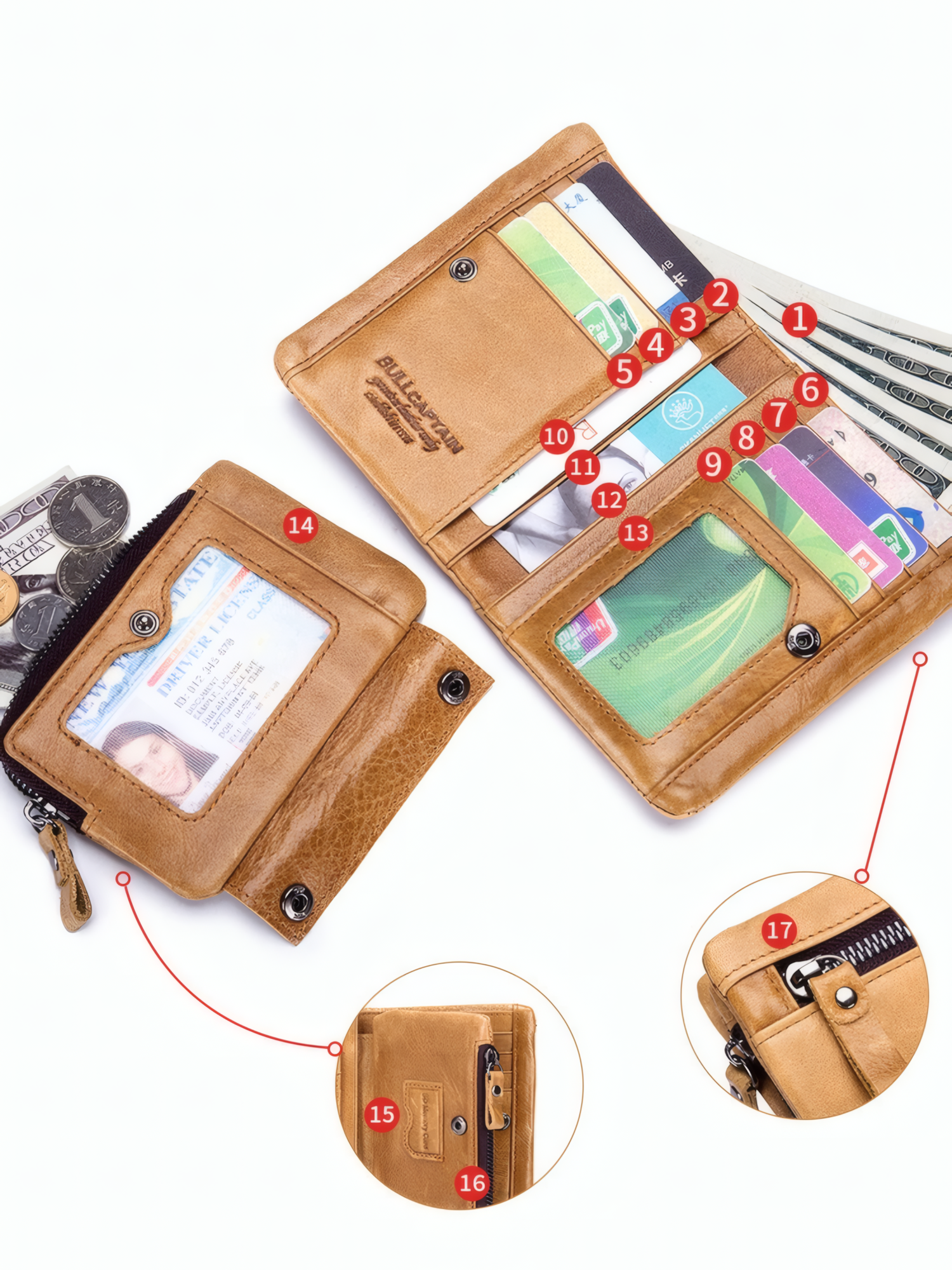Портмоне BULLCAPTAIN, фактура гладкая, горчичный интересное: