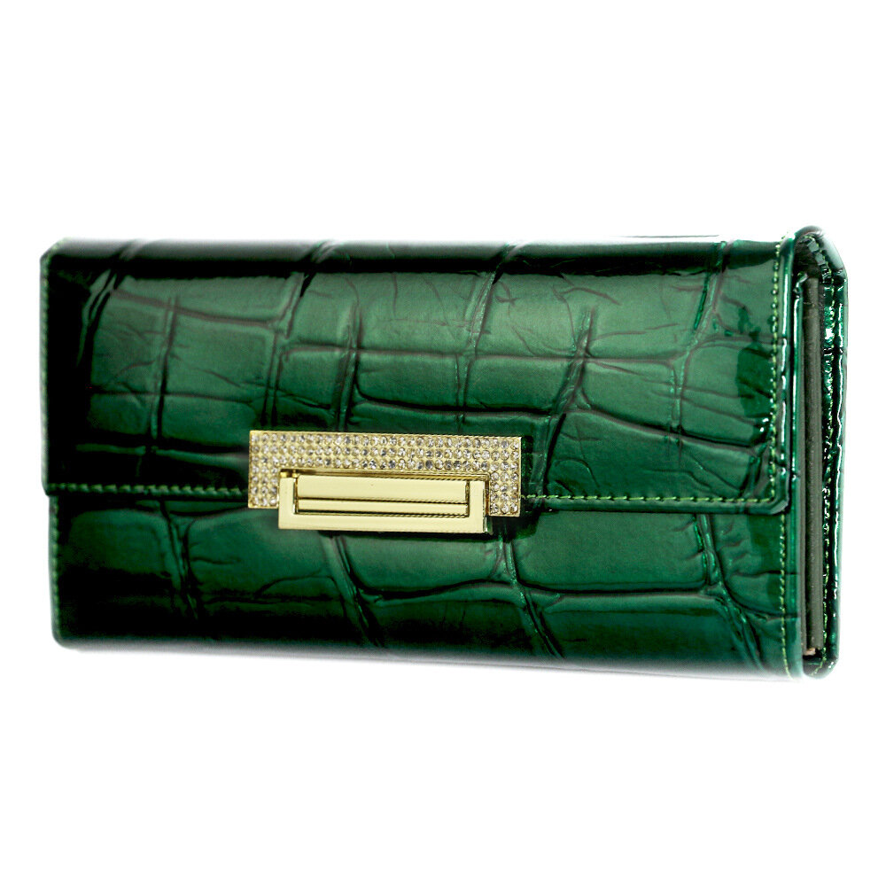 Кошелек HH Electronics, фактура лаковая, зелeный