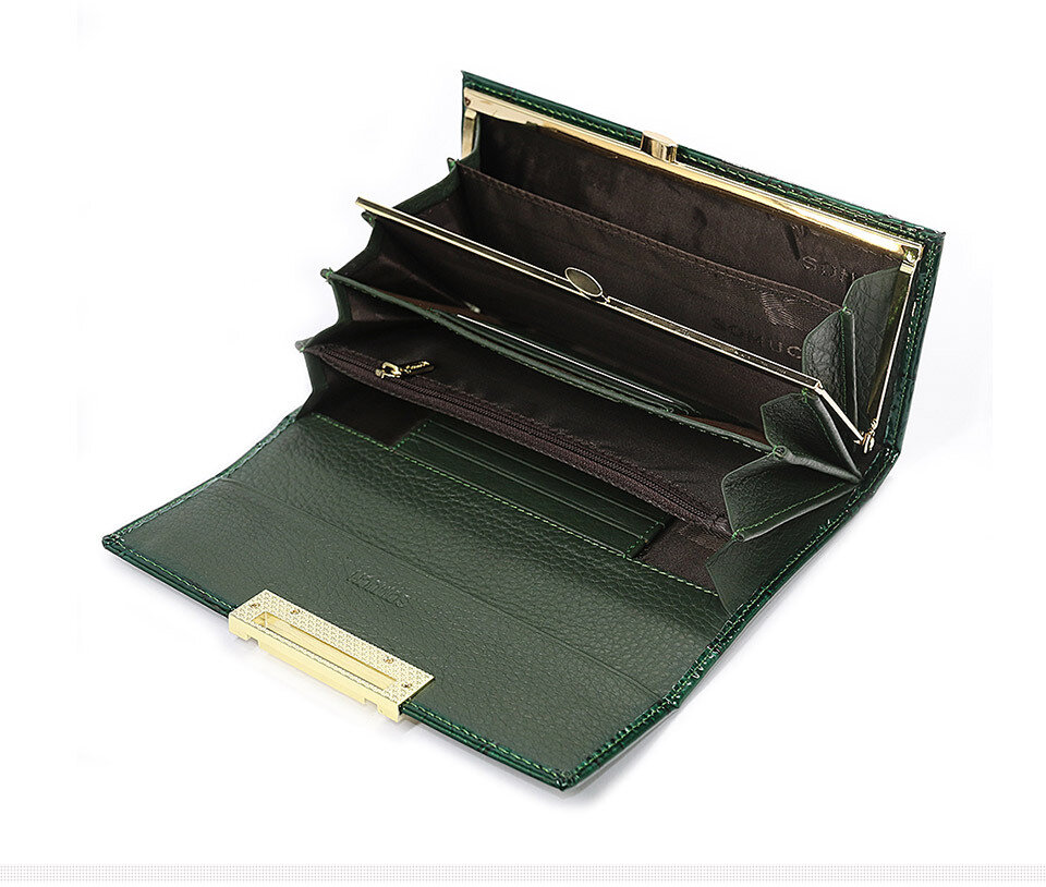 Кошелек HH Electronics, фактура лаковая, зелeный
