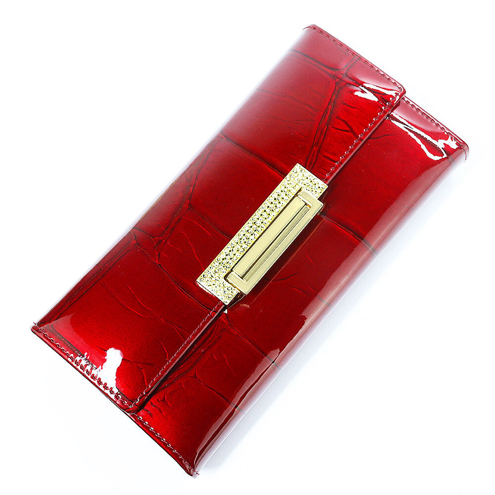 Кошелек HH Electronics, фактура лаковая, под рептилию, красный