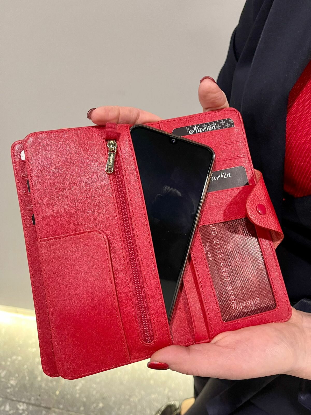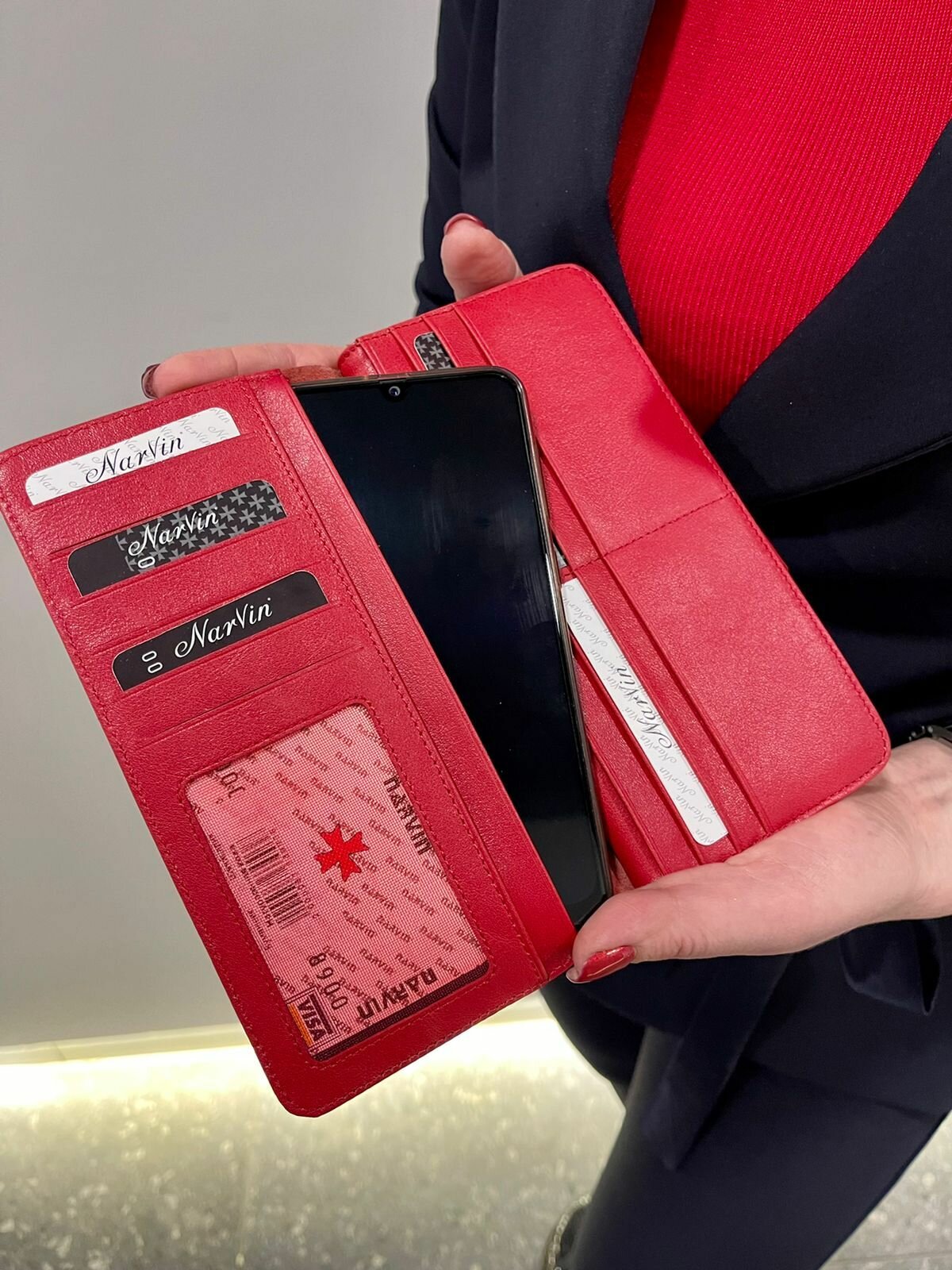 Кошелек NARVIN, фактура зернистая, матовая, красный интересное: