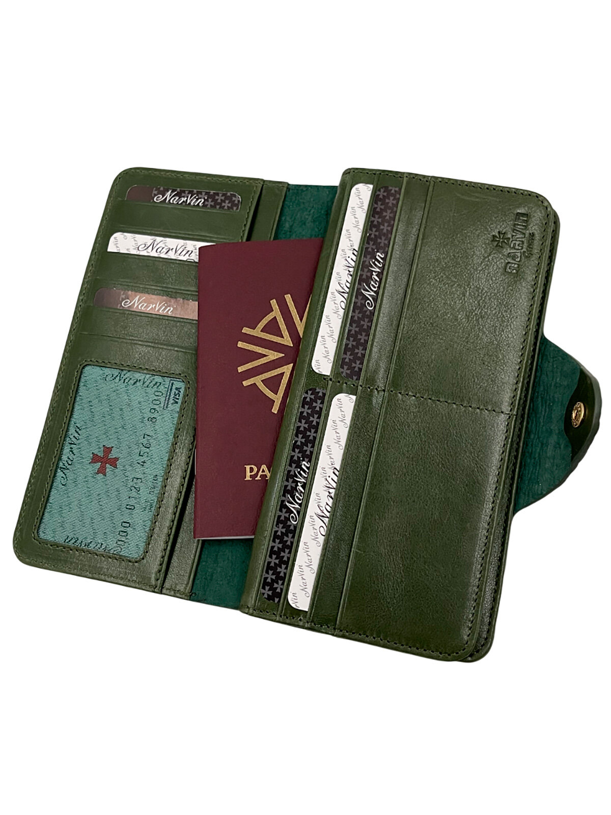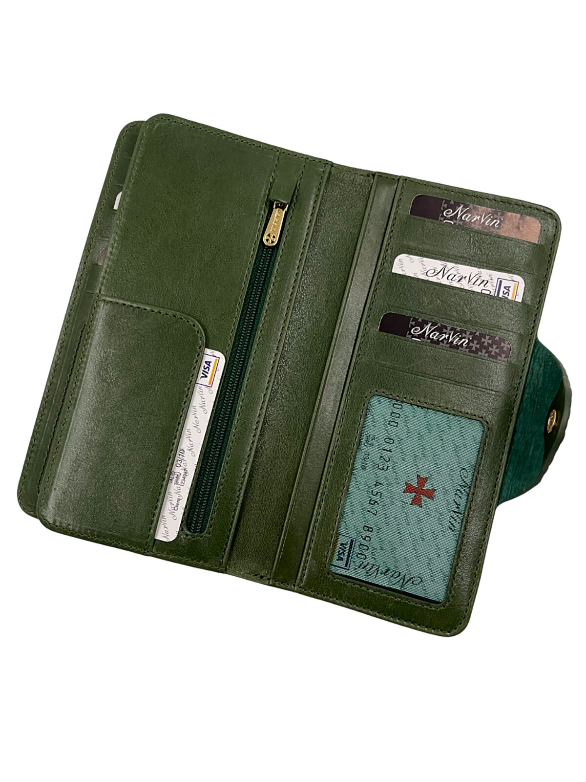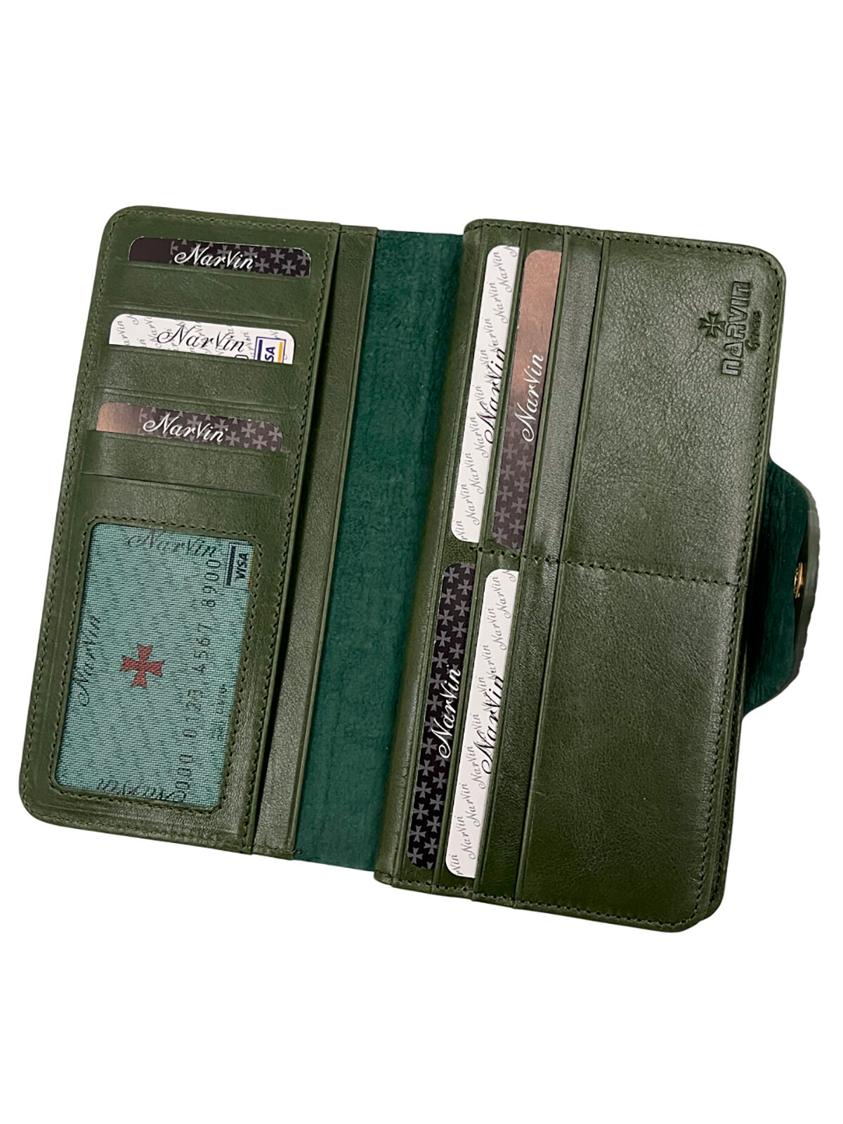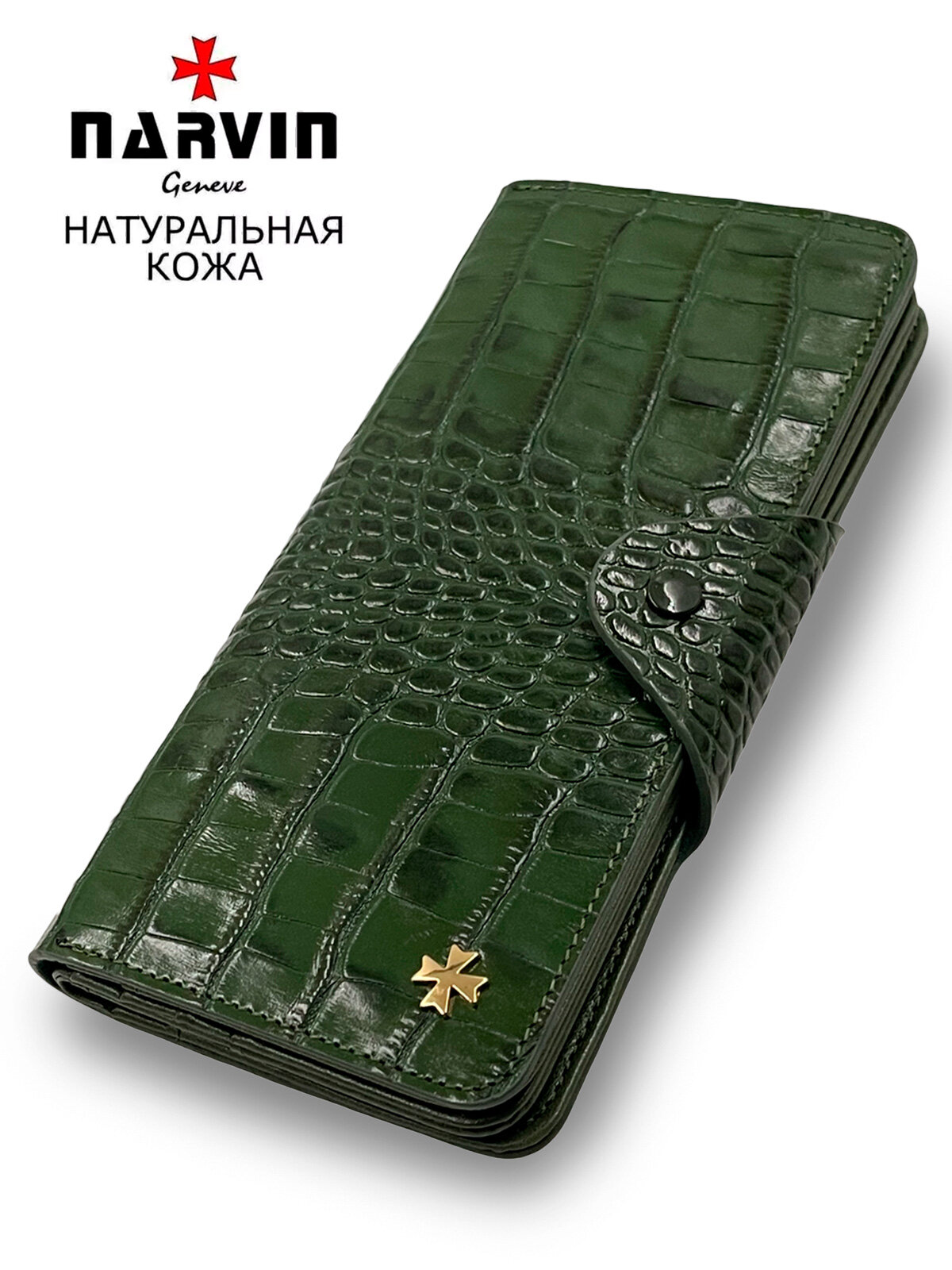 Кошелек NARVIN, фактура под рептилию, зеленый интересное: