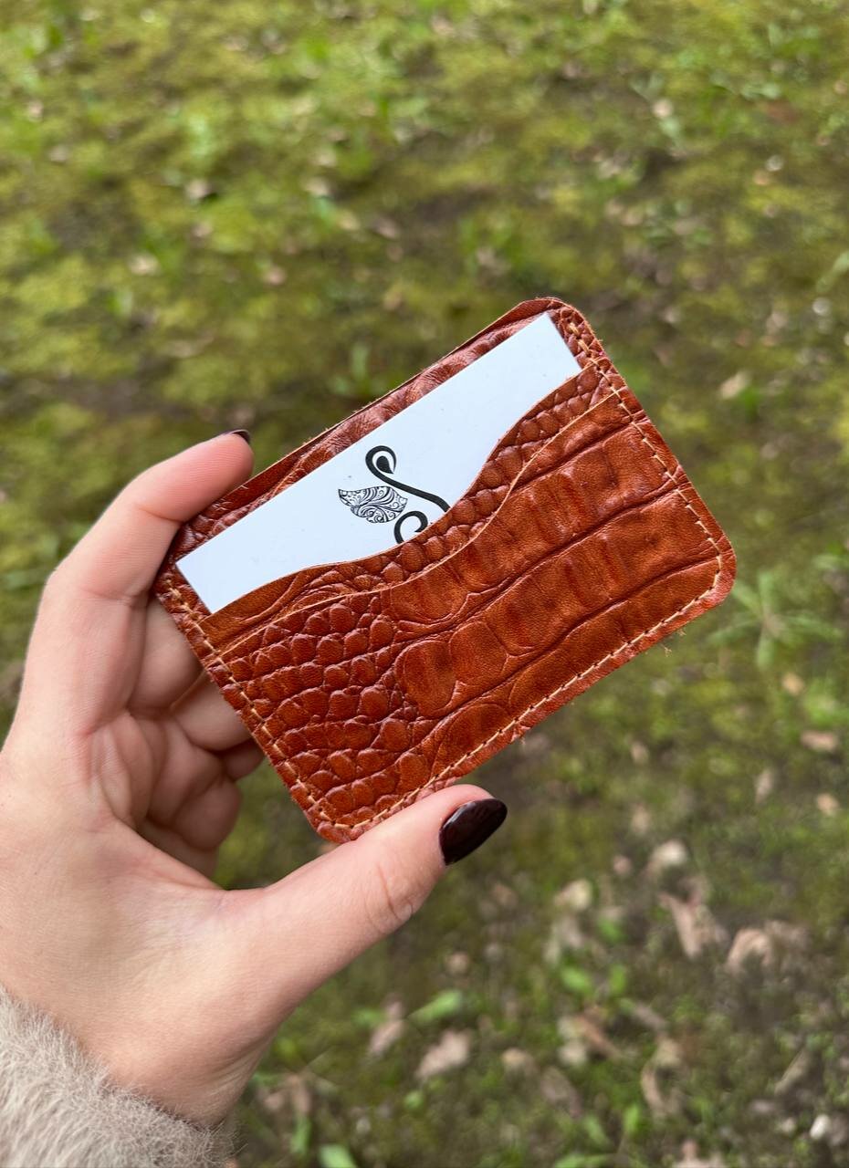 СохранитьВизитница Shapely, фактура под рептилию, коньячный интересное: