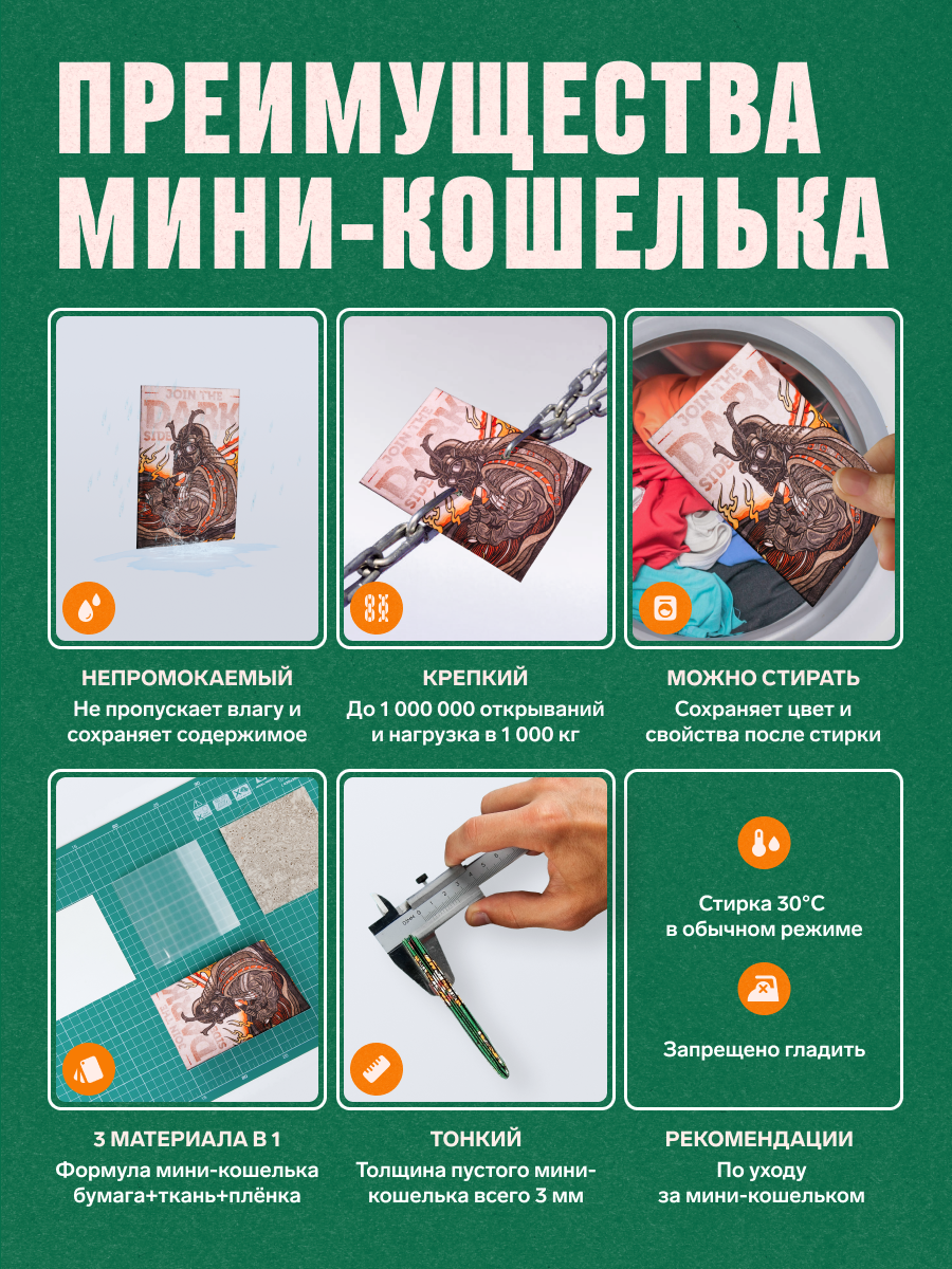 Картхолдер New Wallet, фактура матовая, гладкая, оранжевый/зеленый