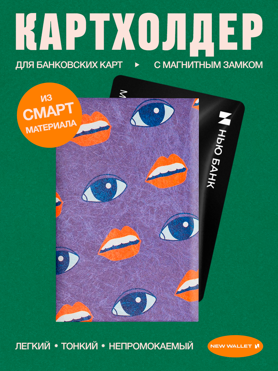Картхолдер New Wallet, фактура матовая, гладкая, фиолетовый/розовый интересное: