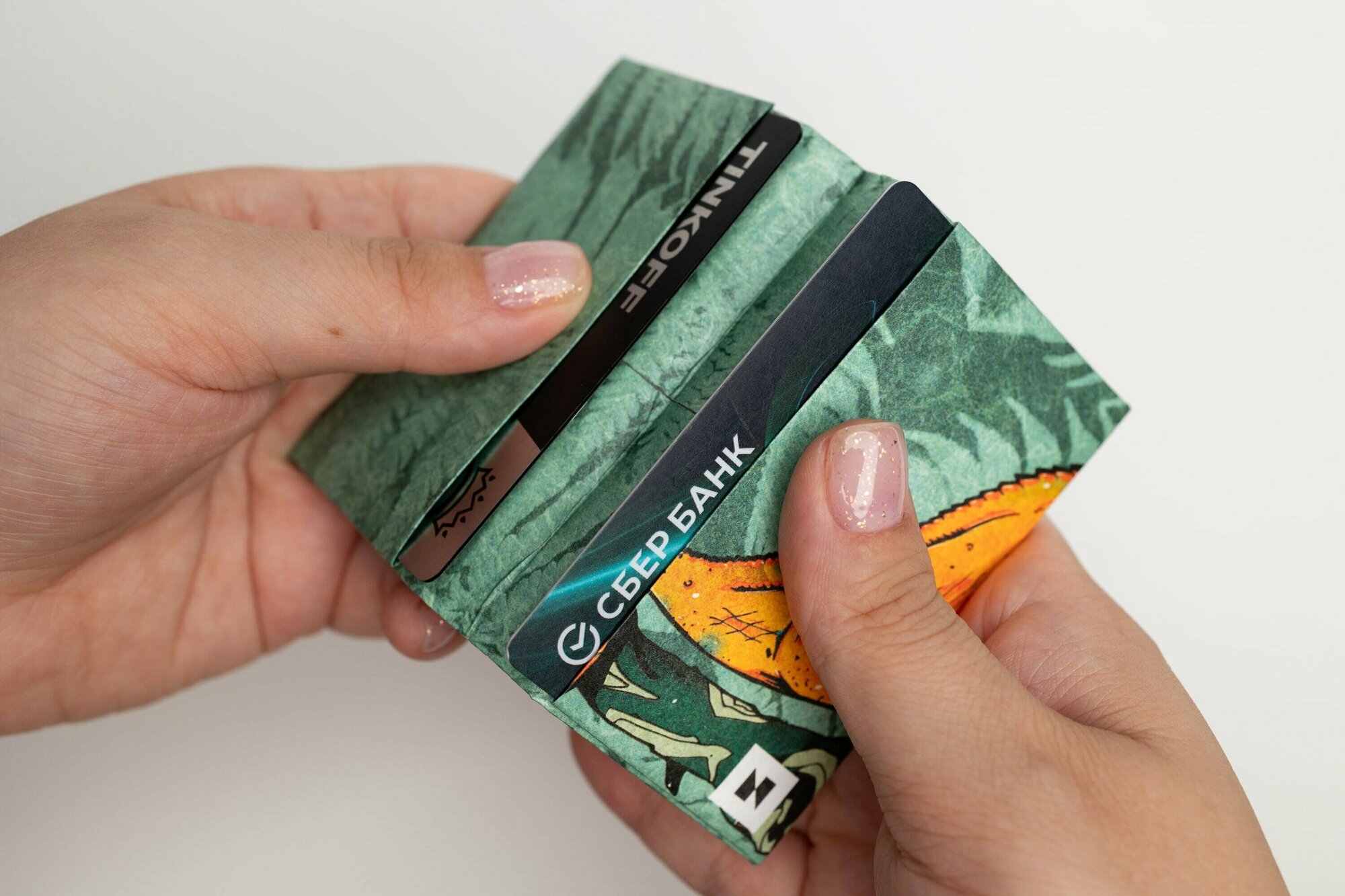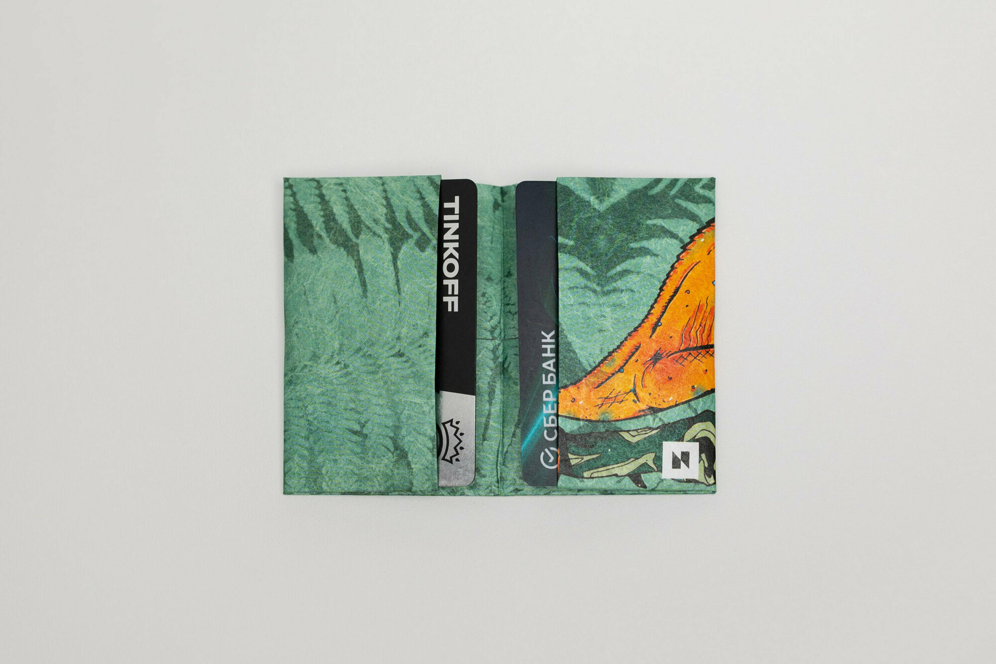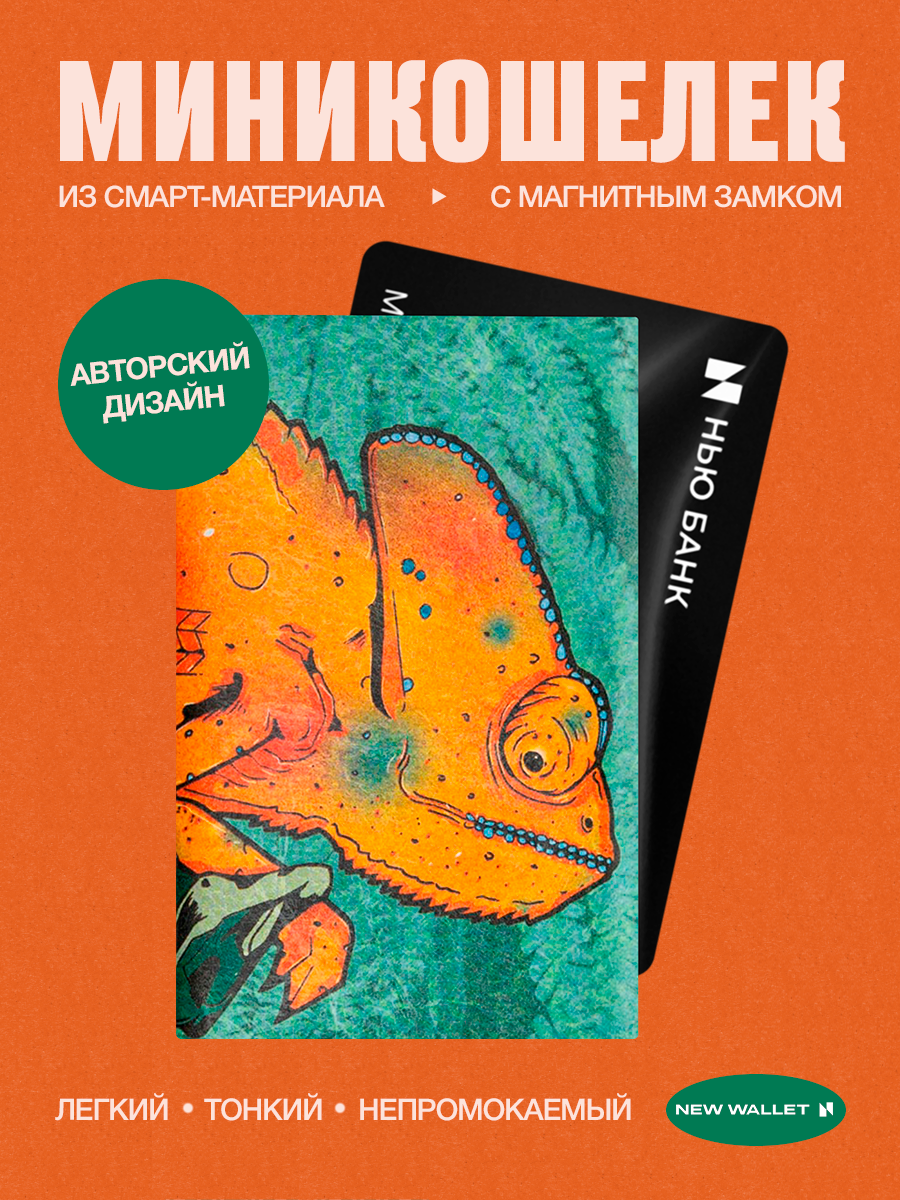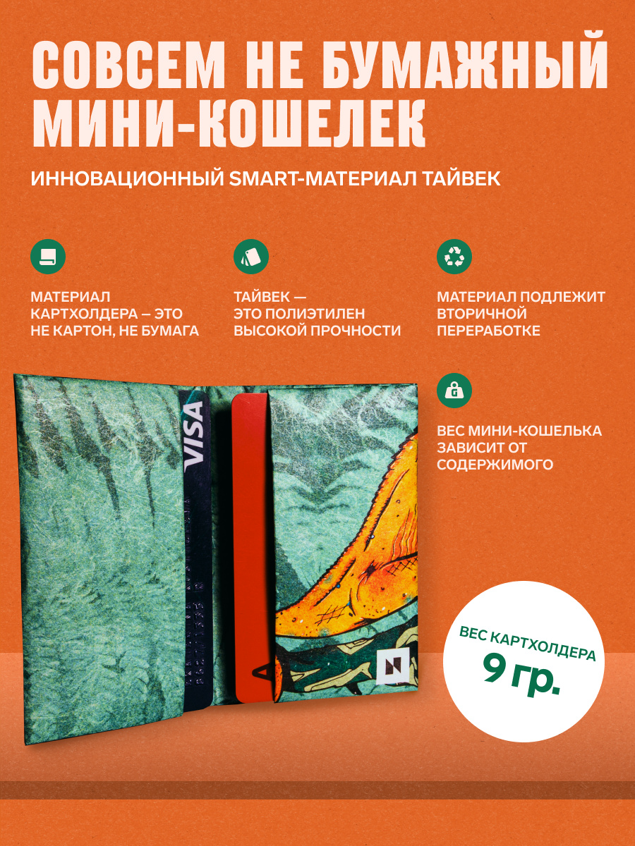 Картхолдер New Wallet, фактура матовая, гладкая, оранжевый/зеленый интересное: