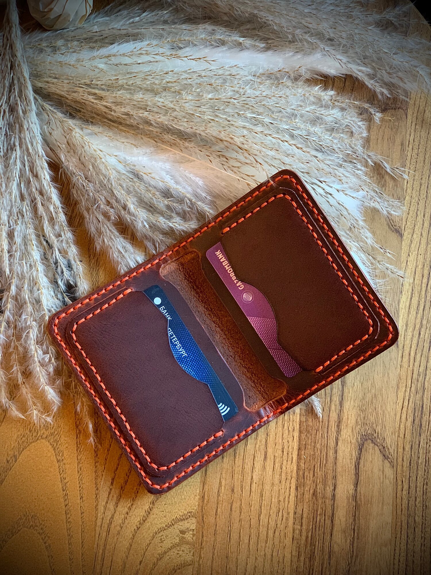 Картхолдер viking leather craft, фактура гладкая, коньяк