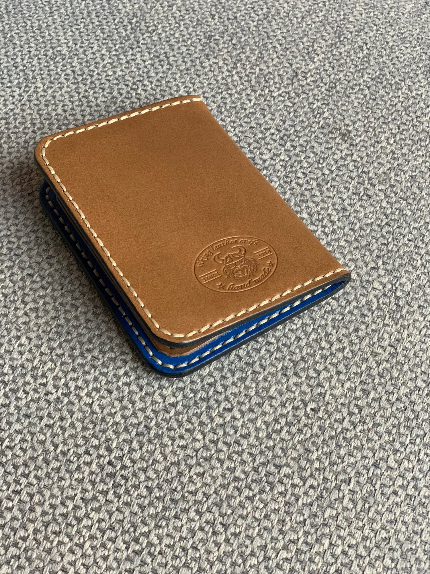 Картхолдер viking leather craft, фактура гладкая, синий/бежевый