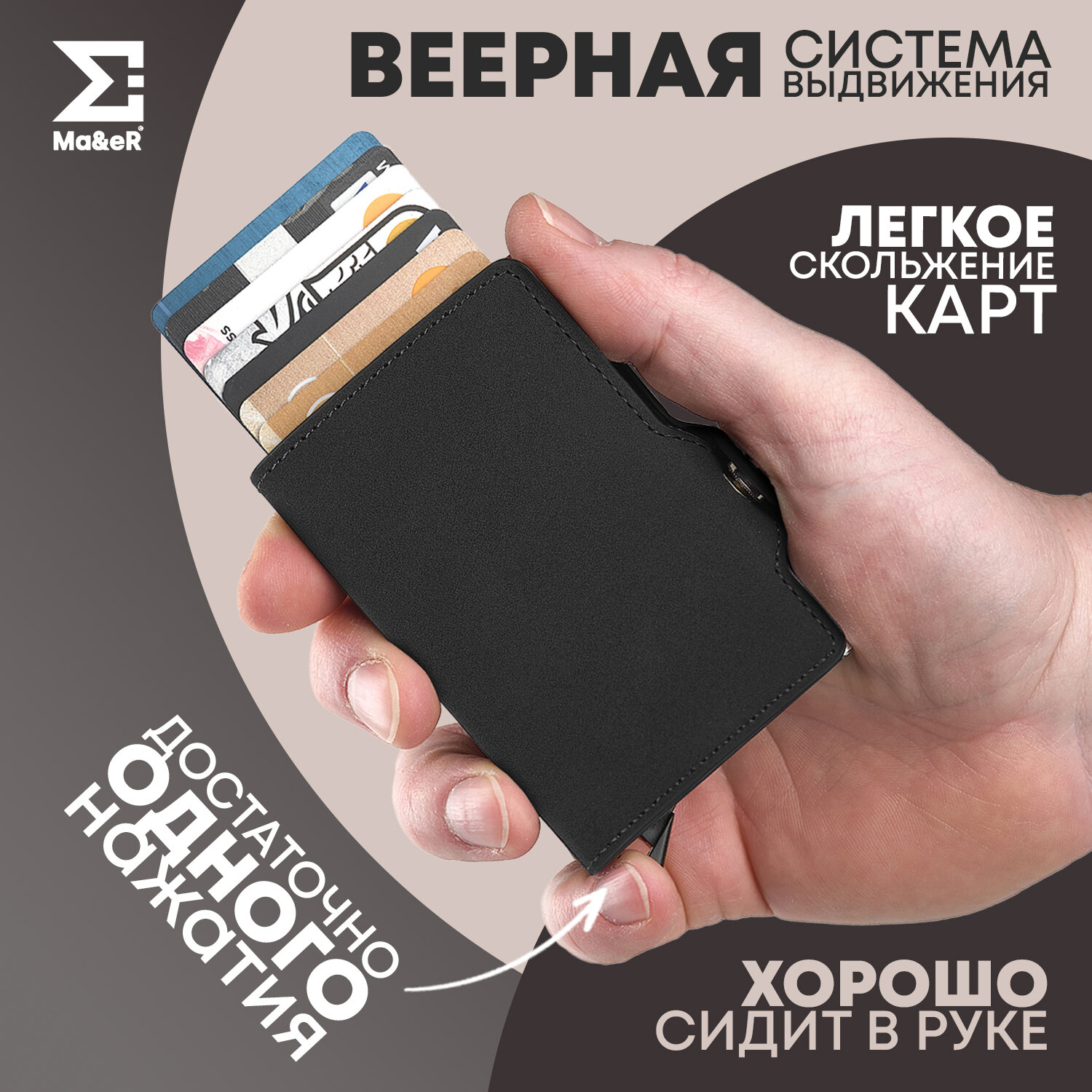 Визитница Ma&eR, фактура гладкая, черный интересное: