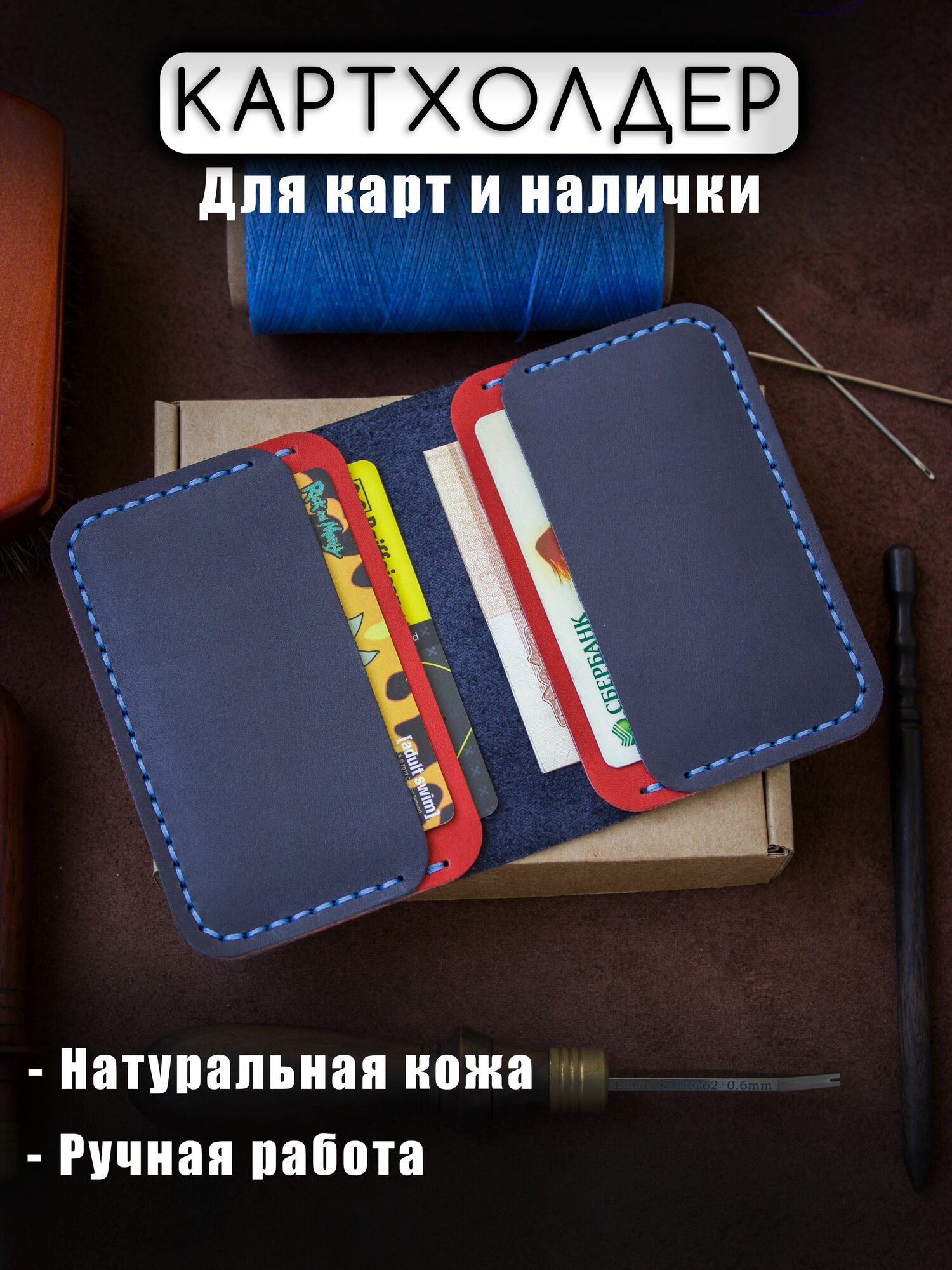 Картхолдер , фактура матовая, синий, красный интересное: