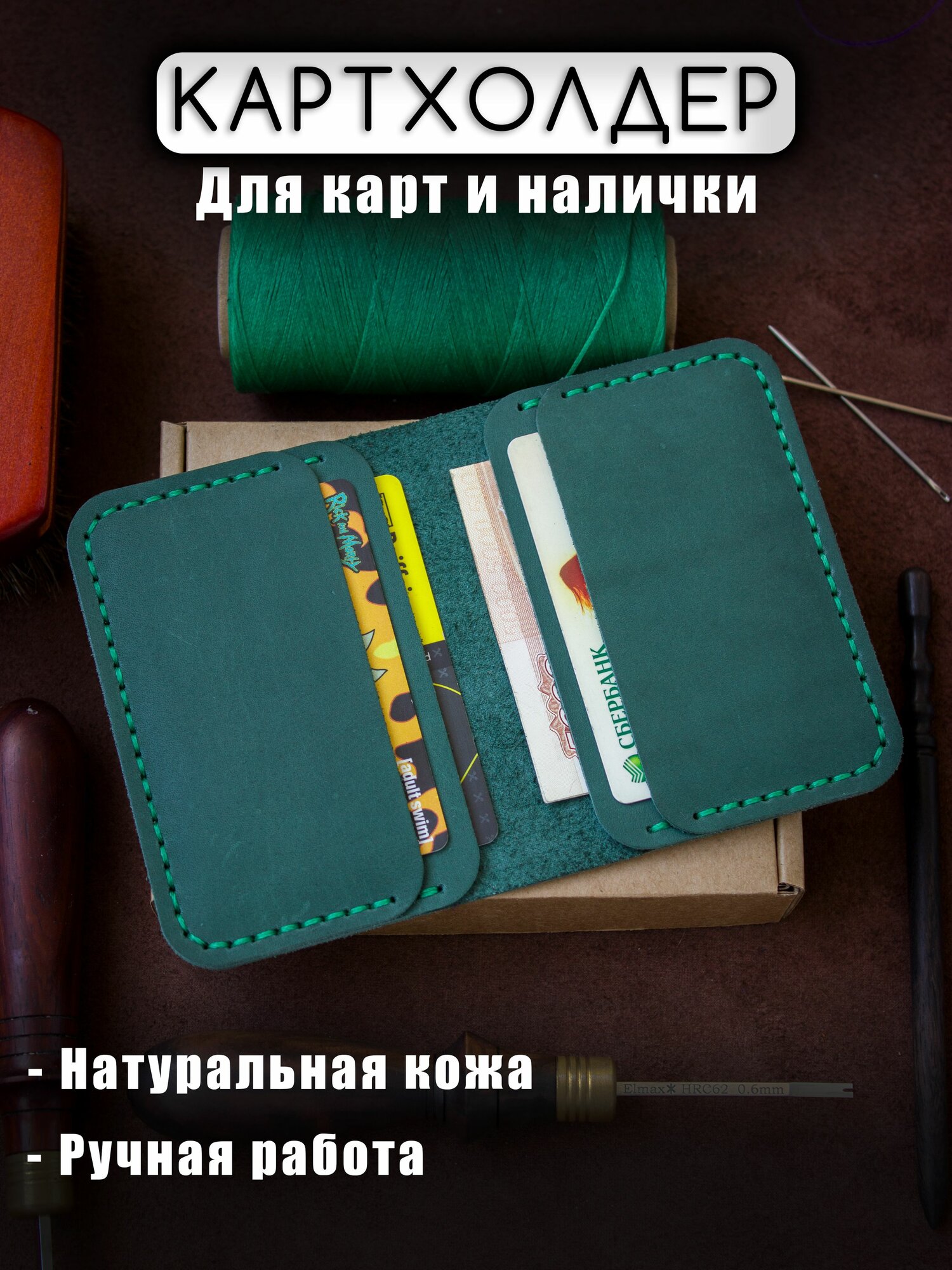 Картхолдер , фактура матовая, зелeный интересное: