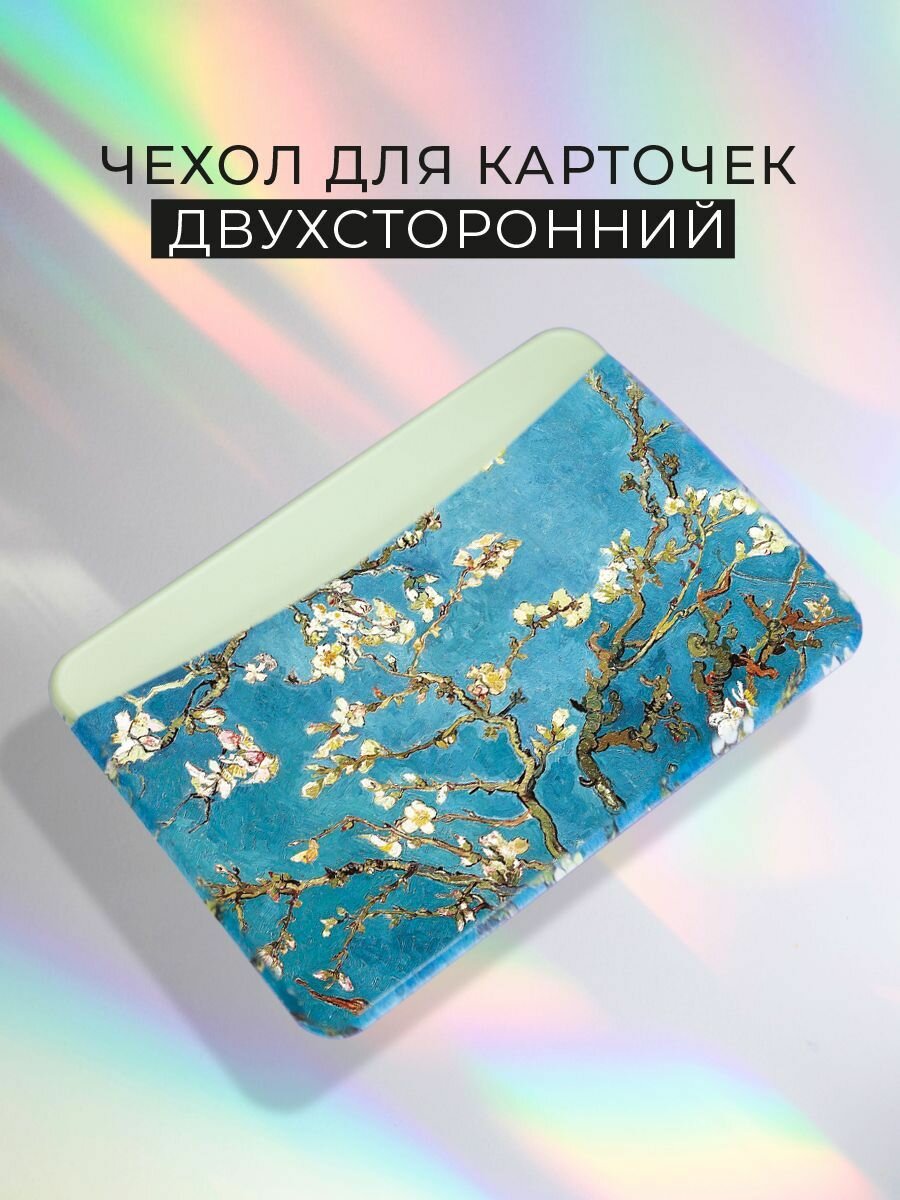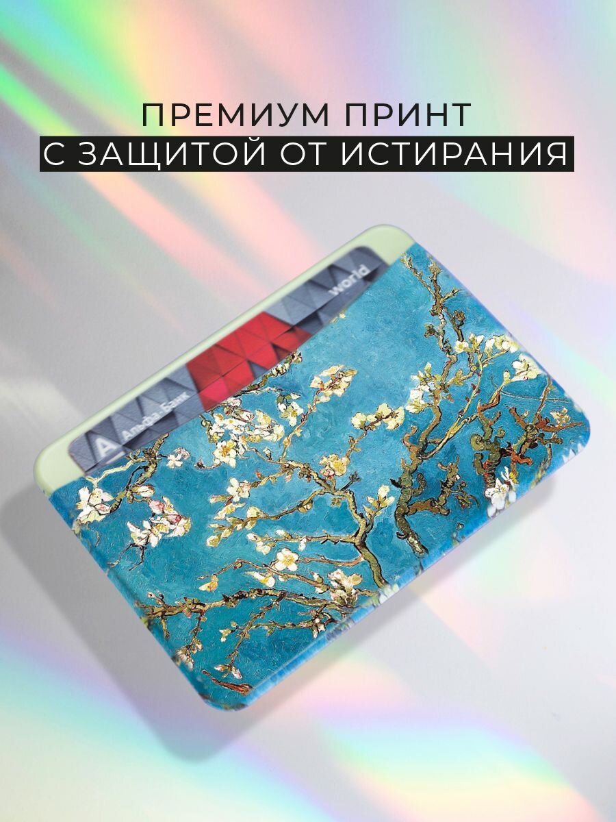 Визитница Valbis, фактура гладкая, глянцевая, лаковая, бирюзовый с принтом интересное: