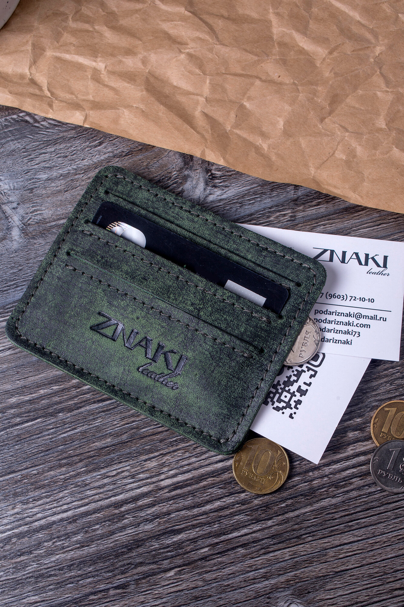 Визитница ЗНАКИ, фактура матовая, гладкая, зеленый/черный интересное: