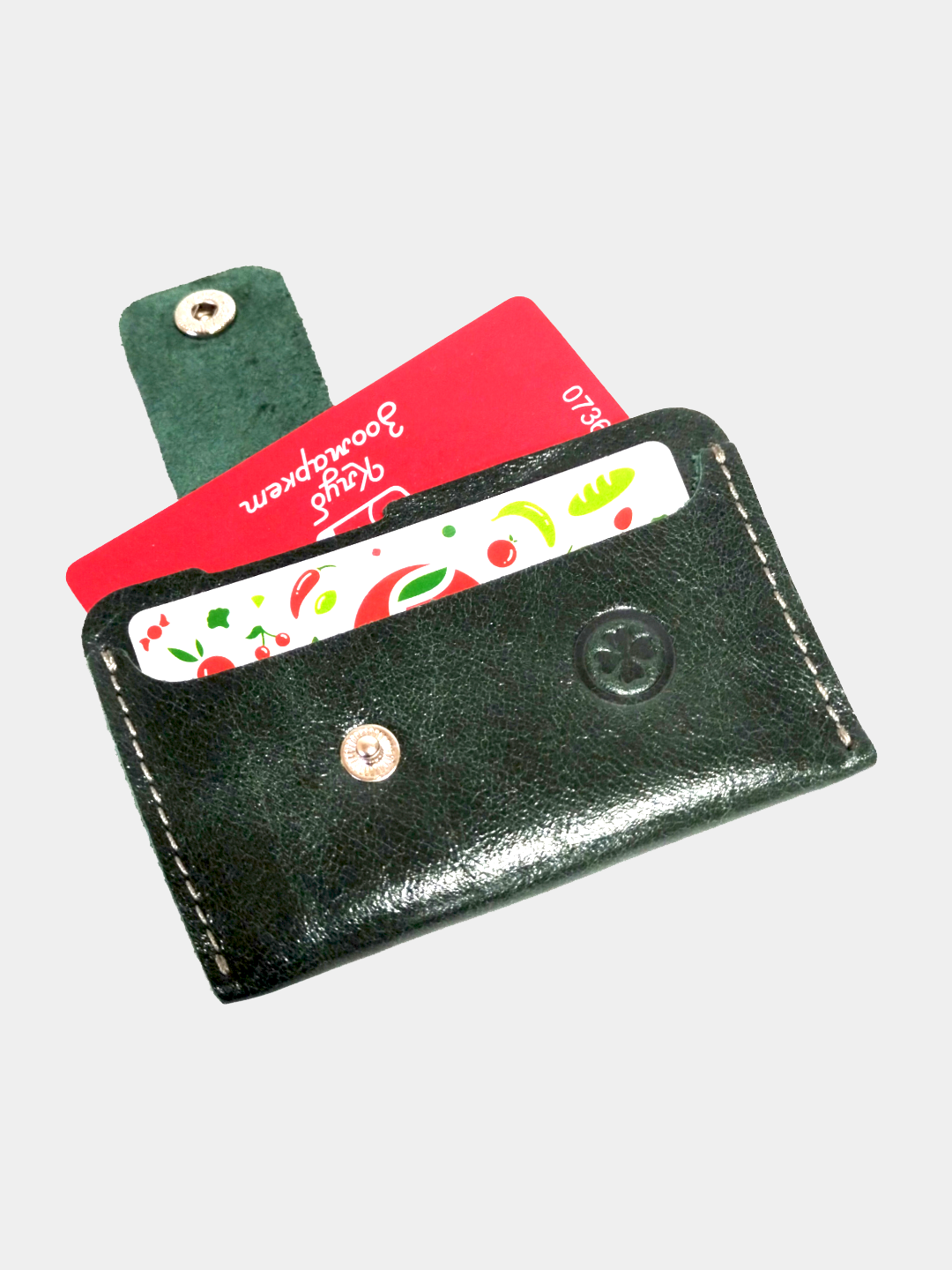 Визитница LuckyClovery, фактура гладкая, темно-зеленый интересное: