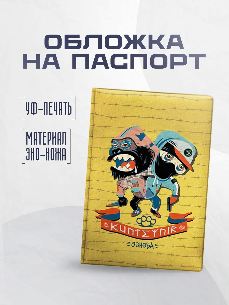 Обложка для паспорта STICKERBOSS, черный, белый, желтый