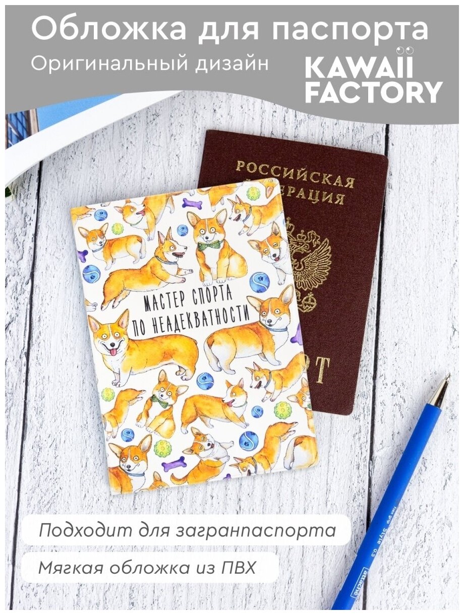 Обложка для паспорта Kawaii Factory, белый/оранжевый интересное: