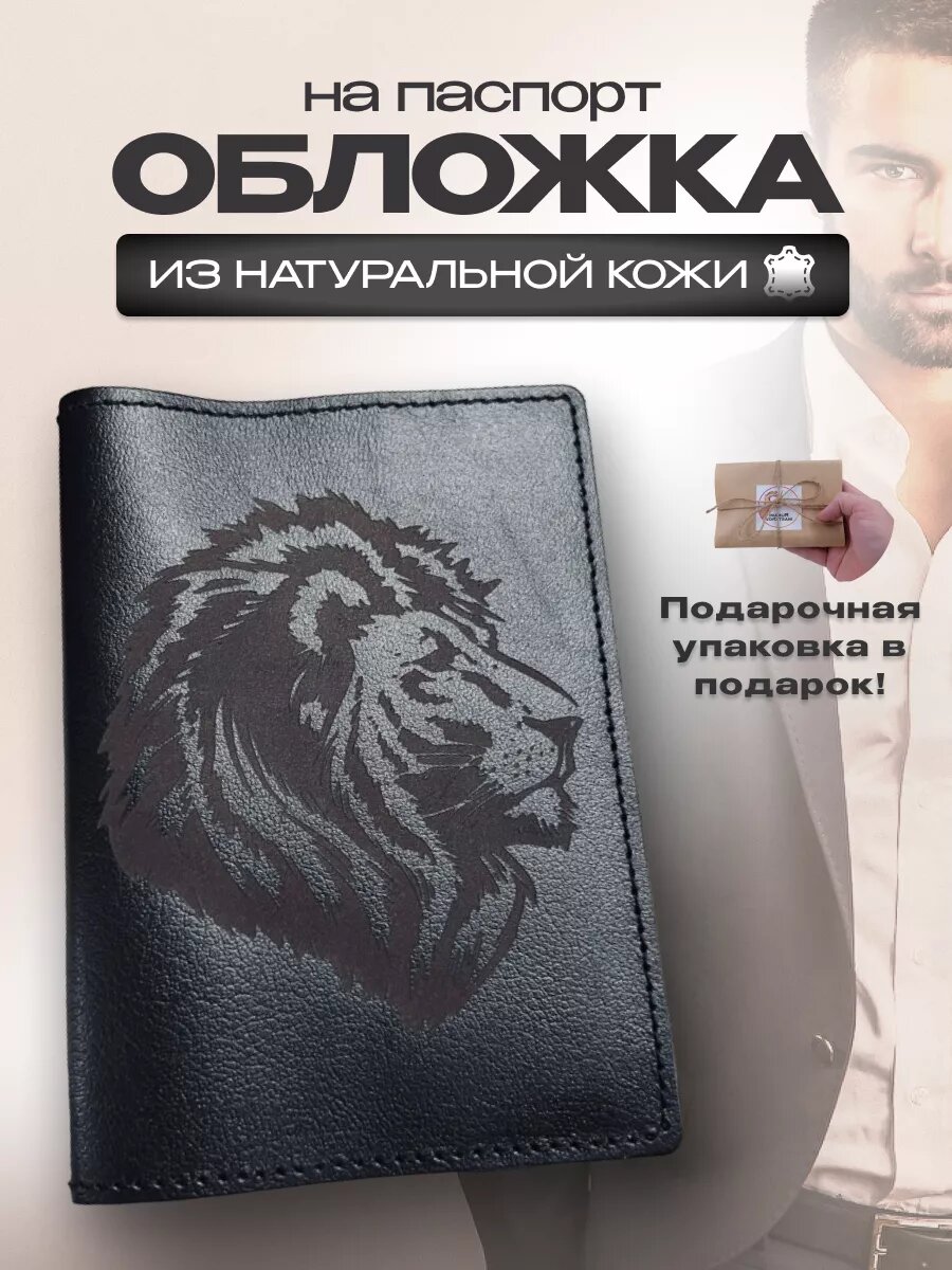 Обложка для паспорта RUKAMI MASTEROV, лев черный