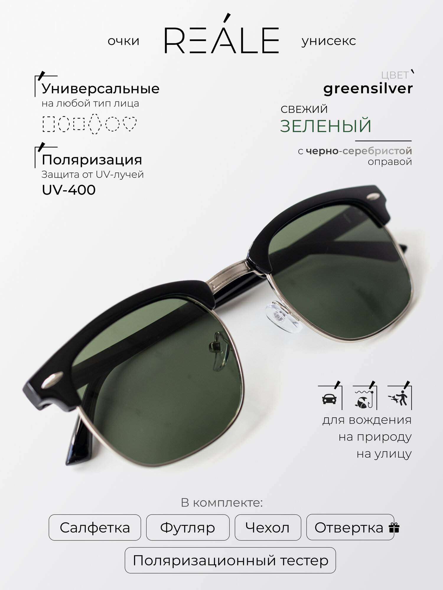 Ниже Вы можете прочитать отзывы на Солнцезащитные очки REALE, зелeный, ознакомится с подробными характеристиками, посмотреть интересные обзоры и фотографии на Солнцезащитные очки REALE, зелeный.