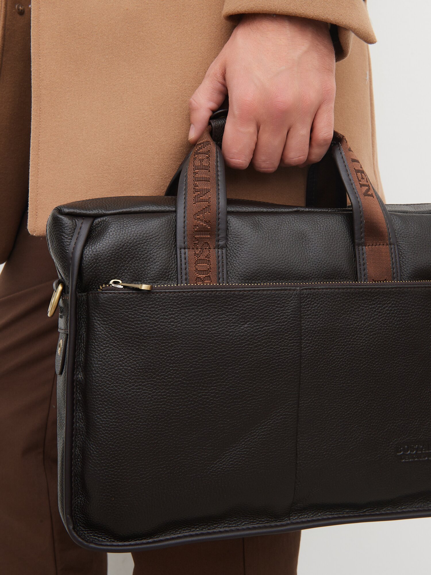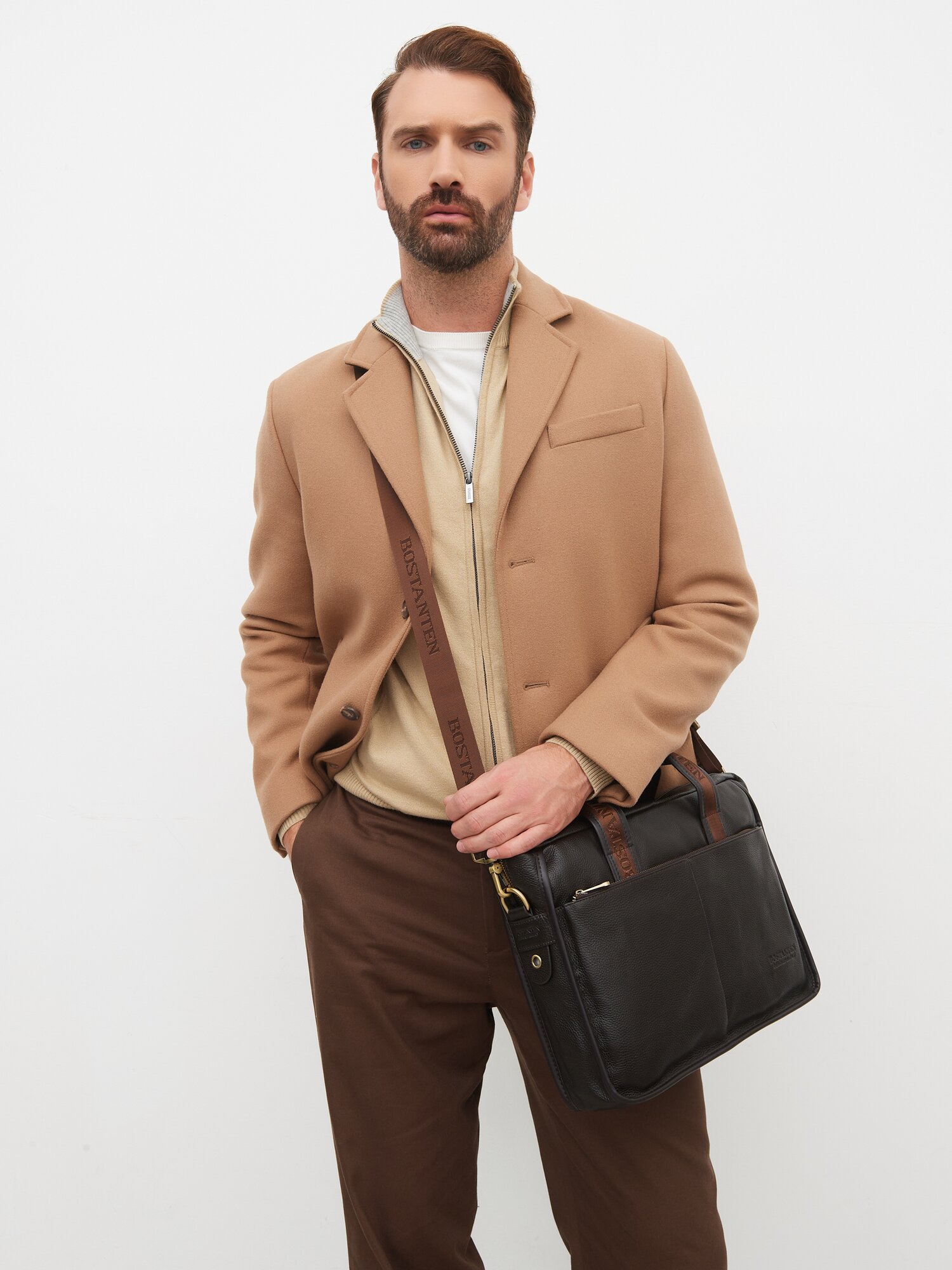 Портфель Bostanten, фактура зернистая, коричневый интересное: