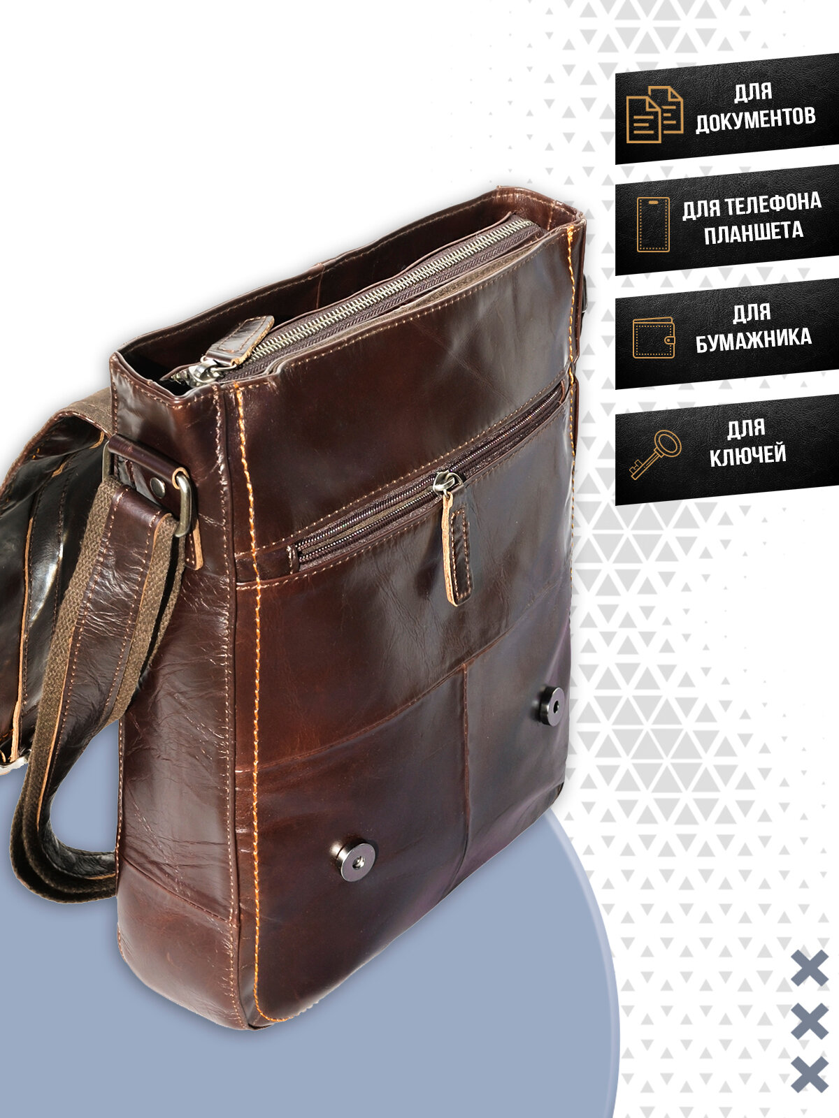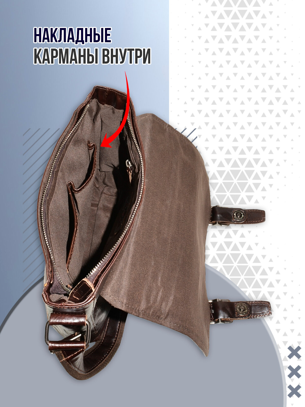 Портфель ZINIMSK, фактура гладкая, темно-коричневый интересное: