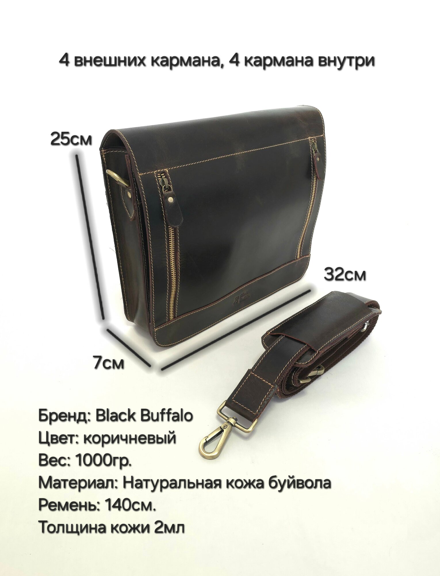 Портфель Black Buffalo, фактура гладкая, коричневый 05 интересное: