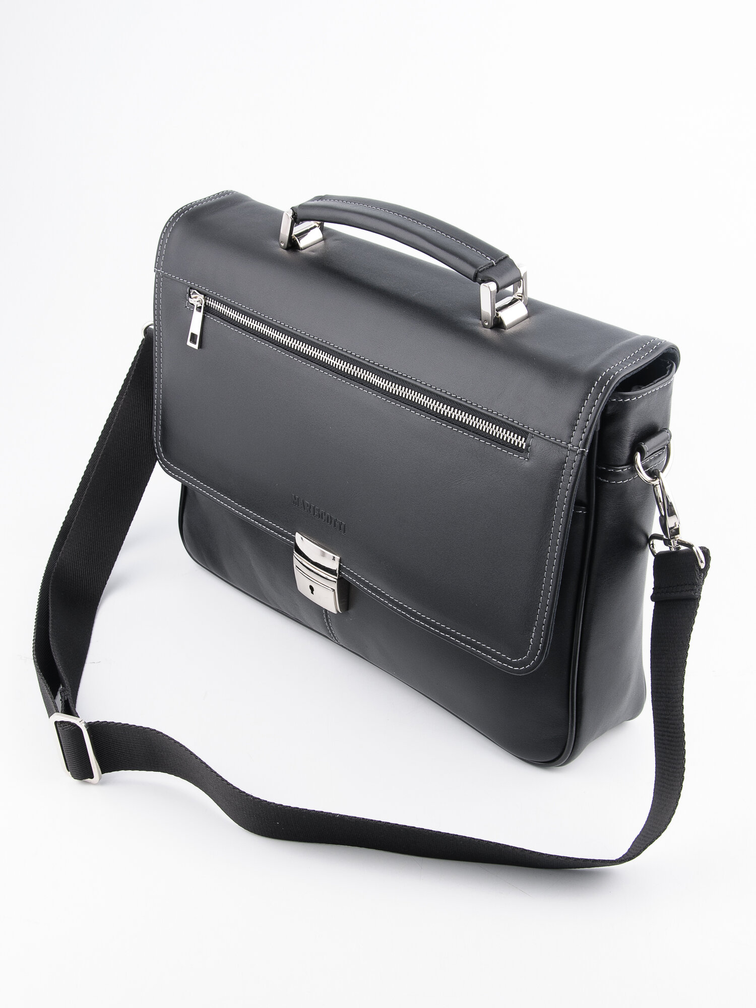 Портфель Franchesco Mariscotti, фактура тиснение, гладкая, черный матовый