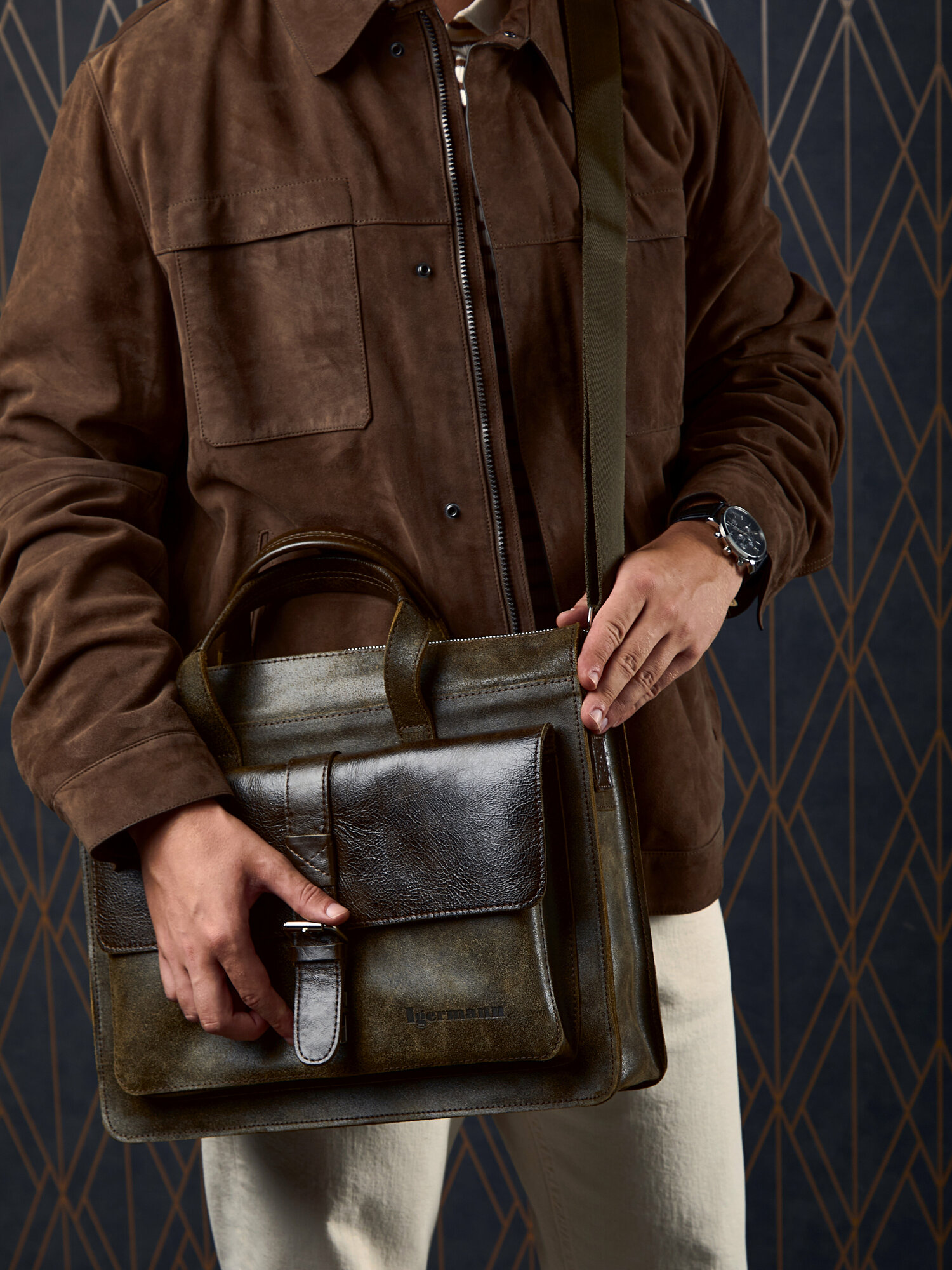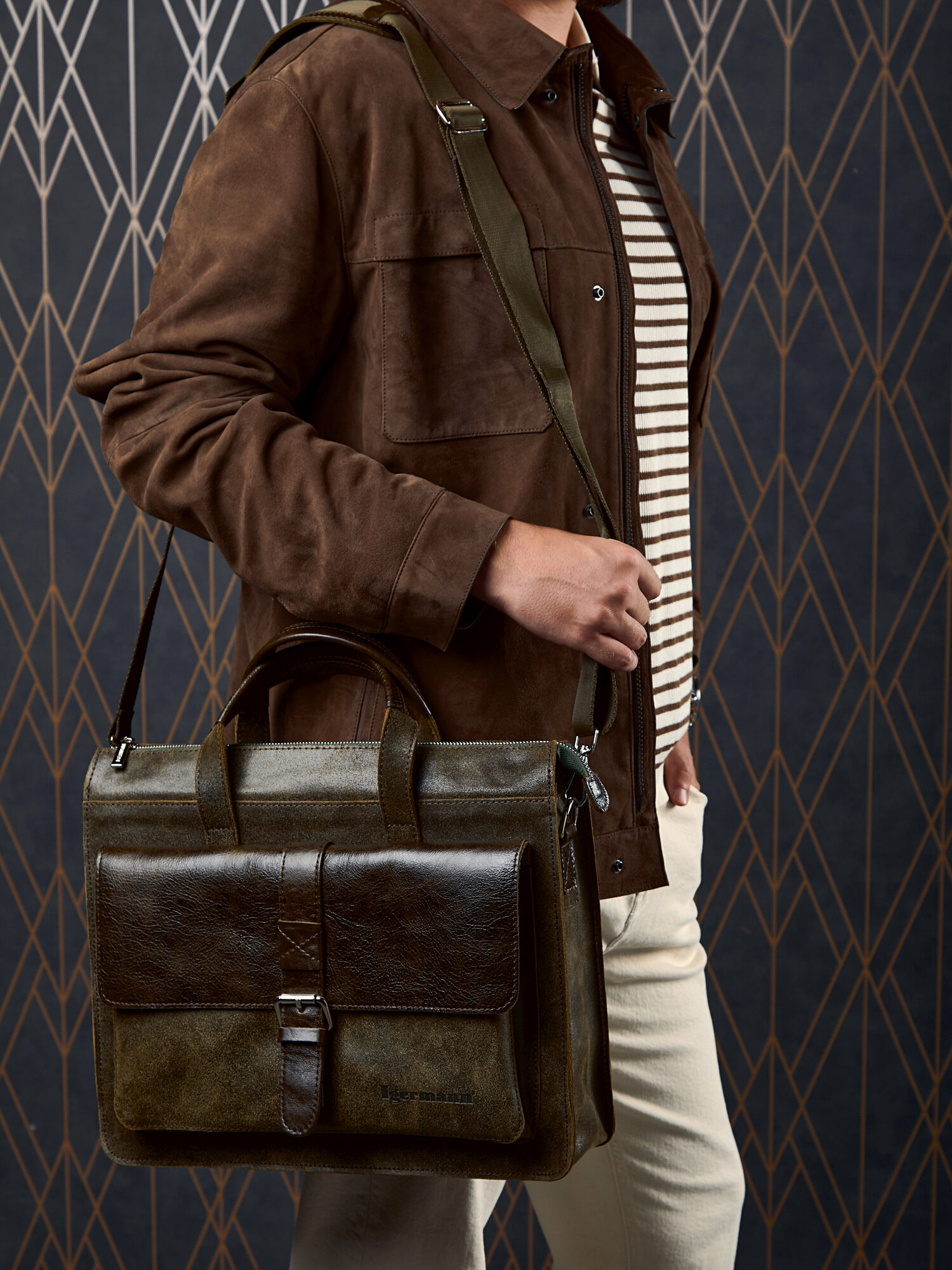 Портфель Igermann, фактура гладкая, оливковый интересное: