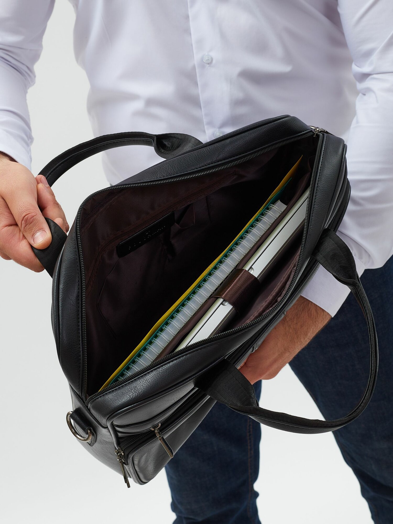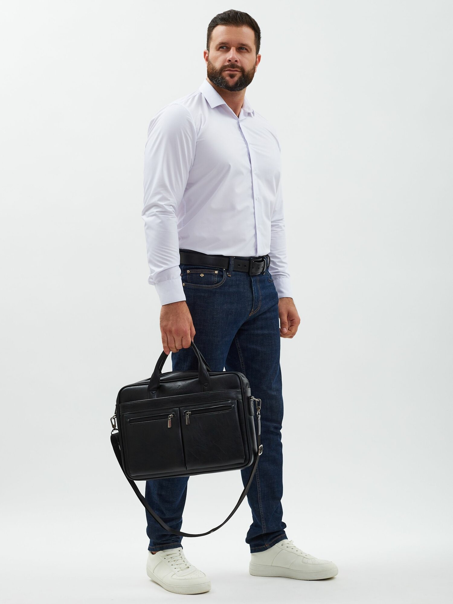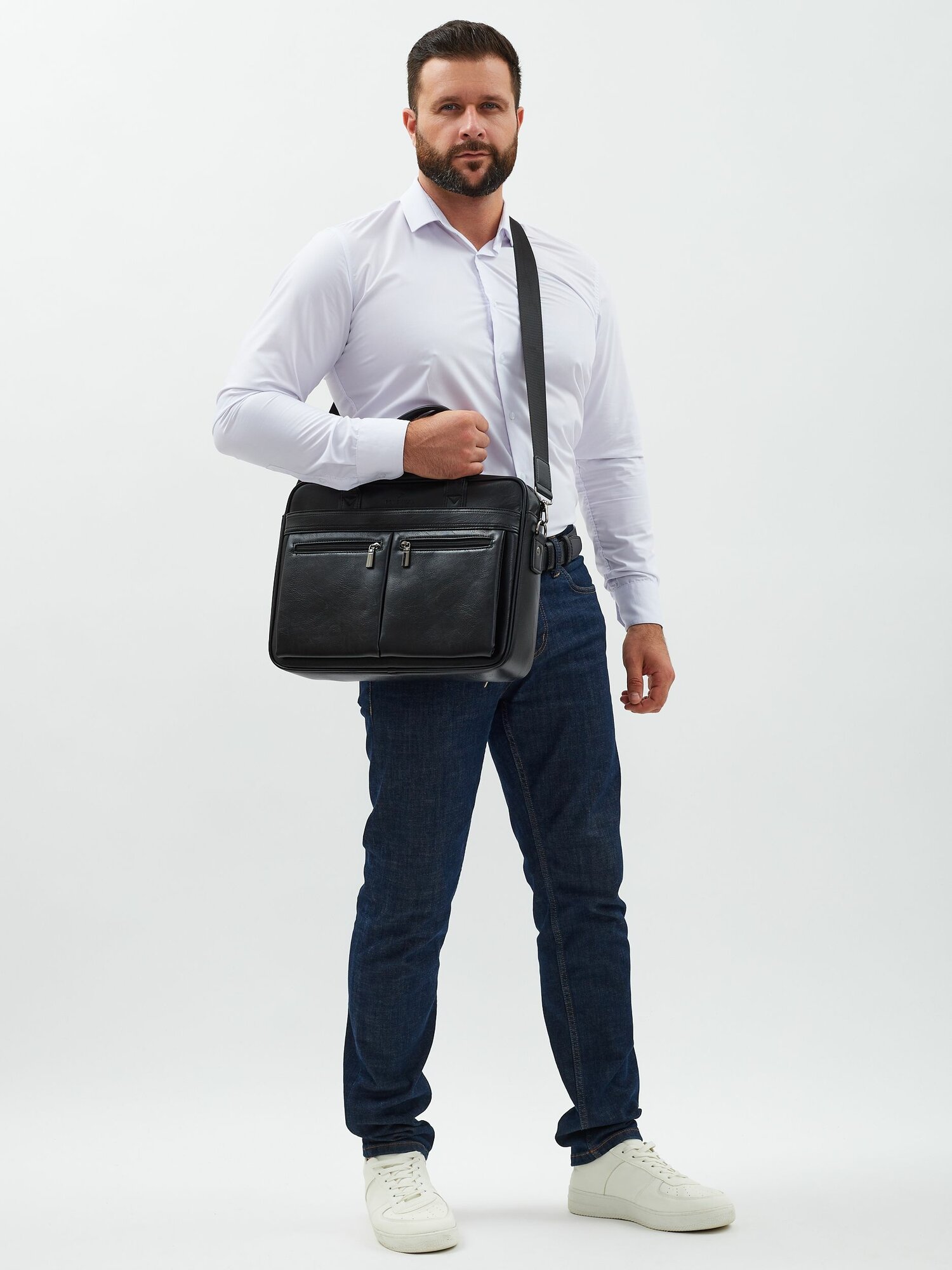 Купить Портфель POUCHMAN, фактура гладкая, черный 5