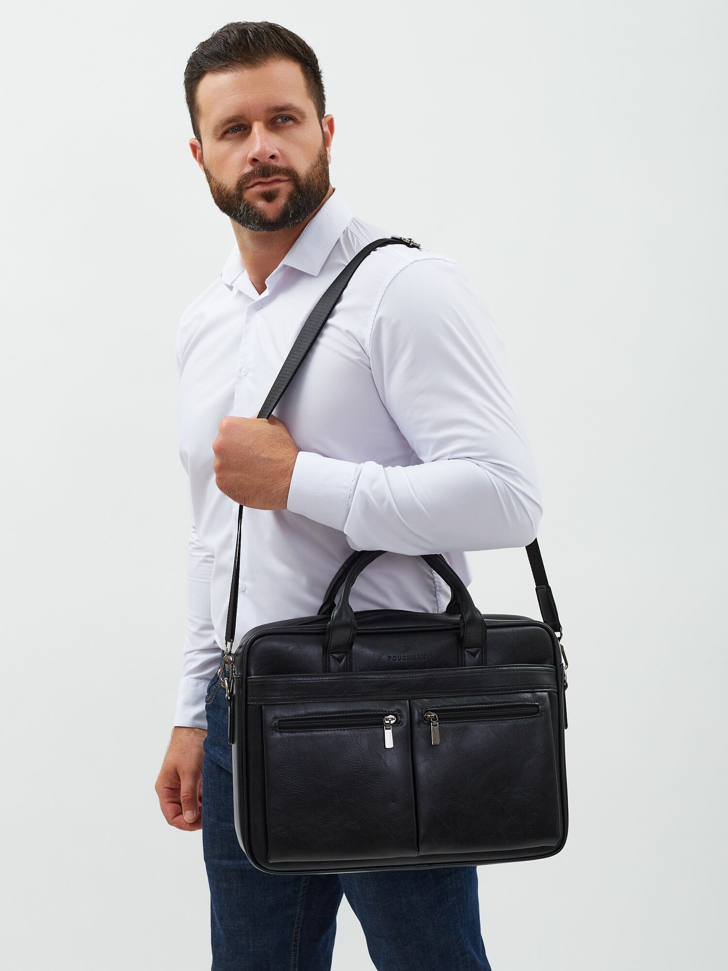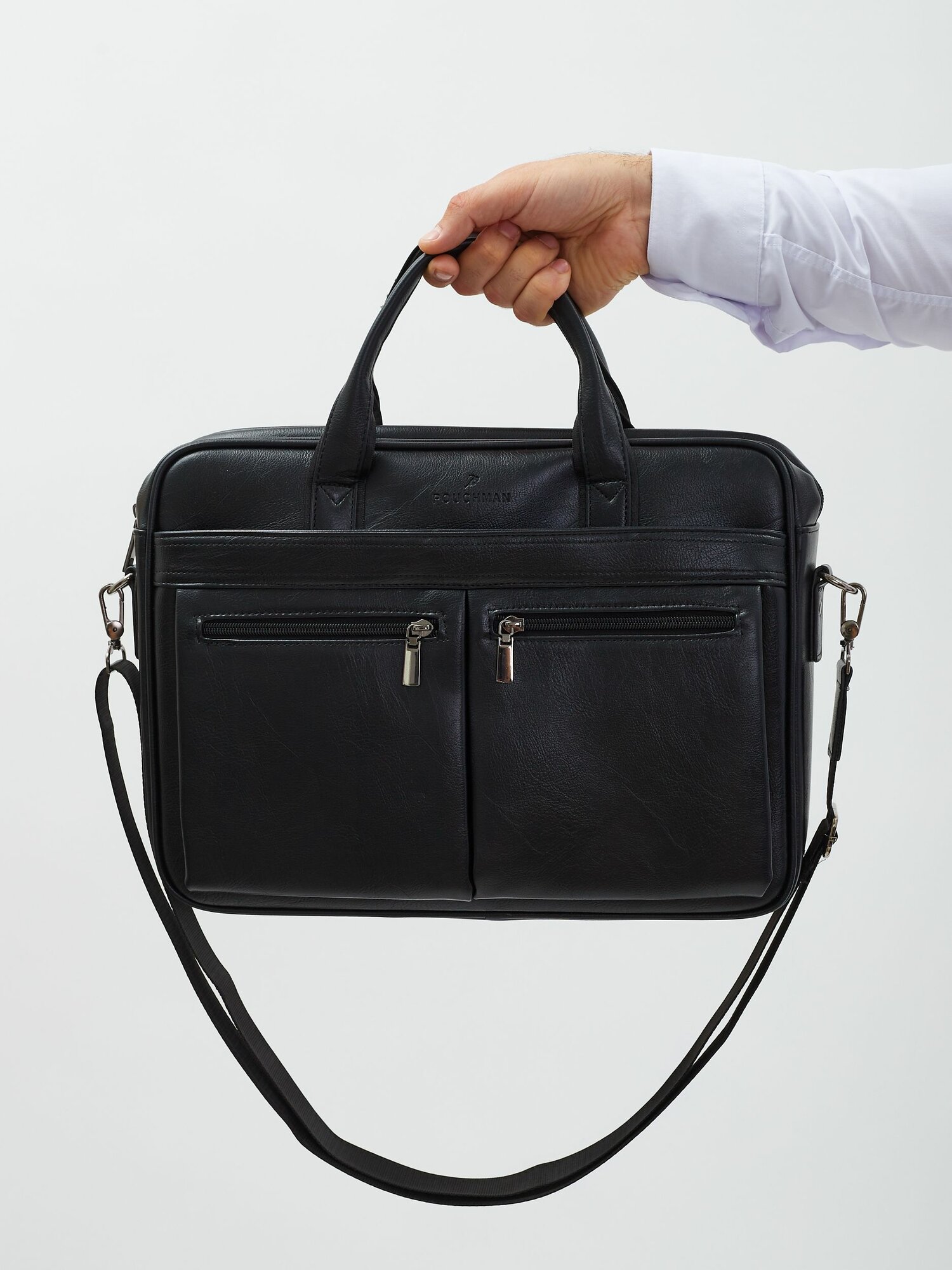 Портфель POUCHMAN, фактура гладкая, черный 5 интересное: