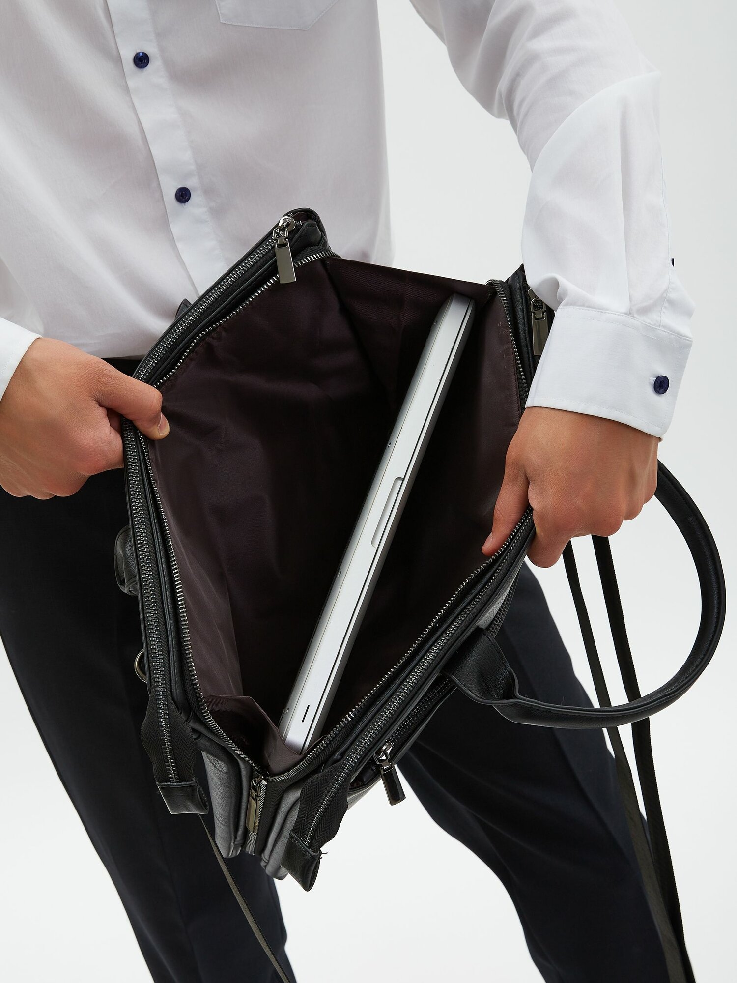 Портфель POUCHMAN, фактура гладкая, черный 3