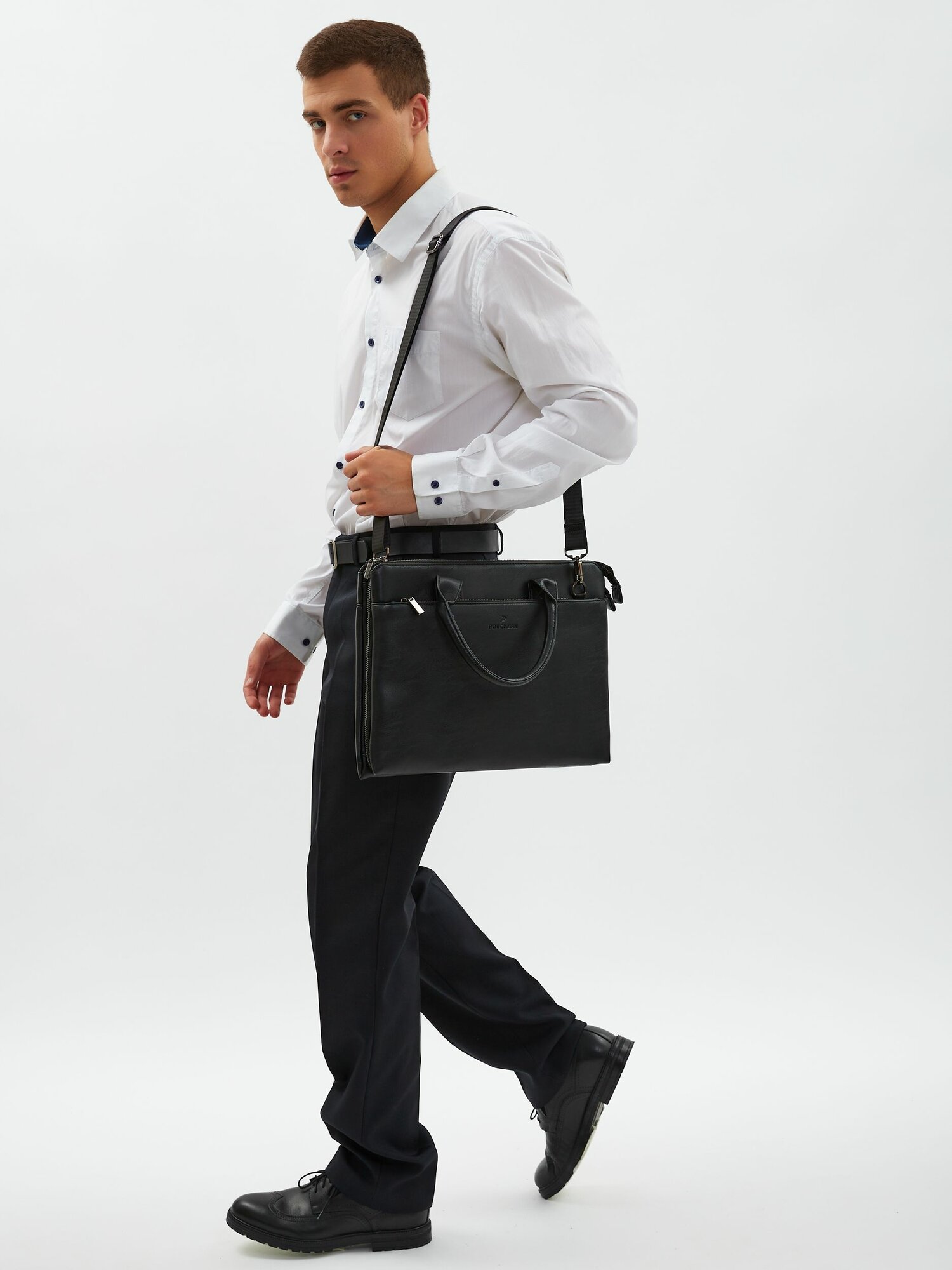 Портфель POUCHMAN, фактура гладкая, черный 5