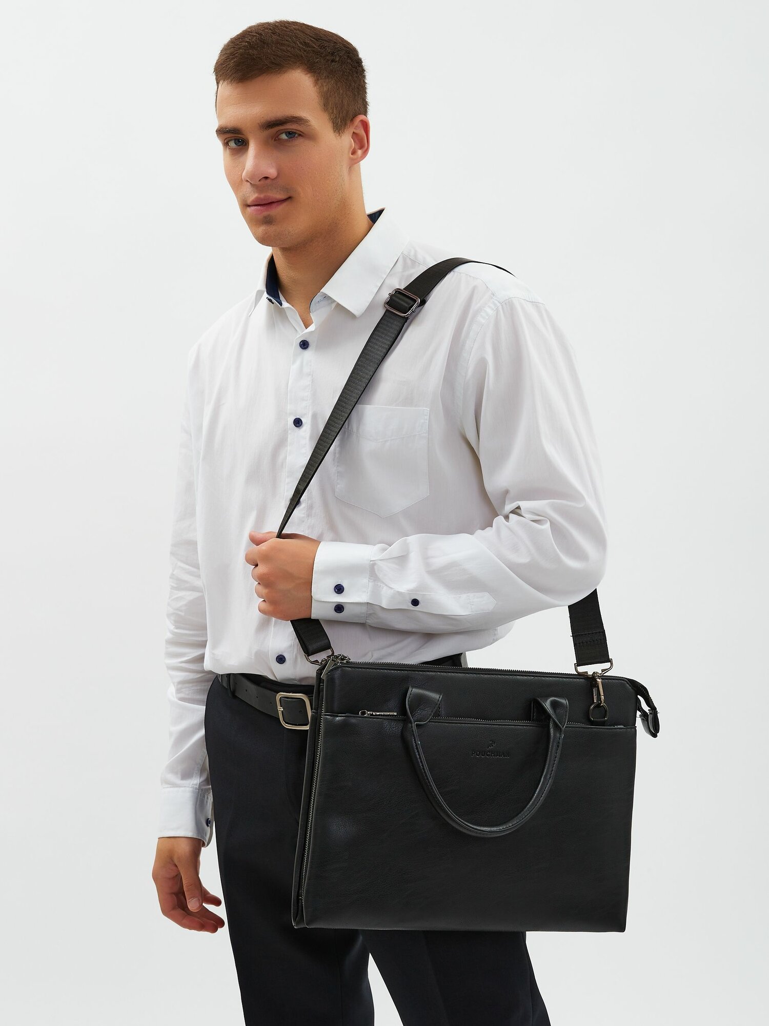 Портфель POUCHMAN, фактура гладкая, черный 1