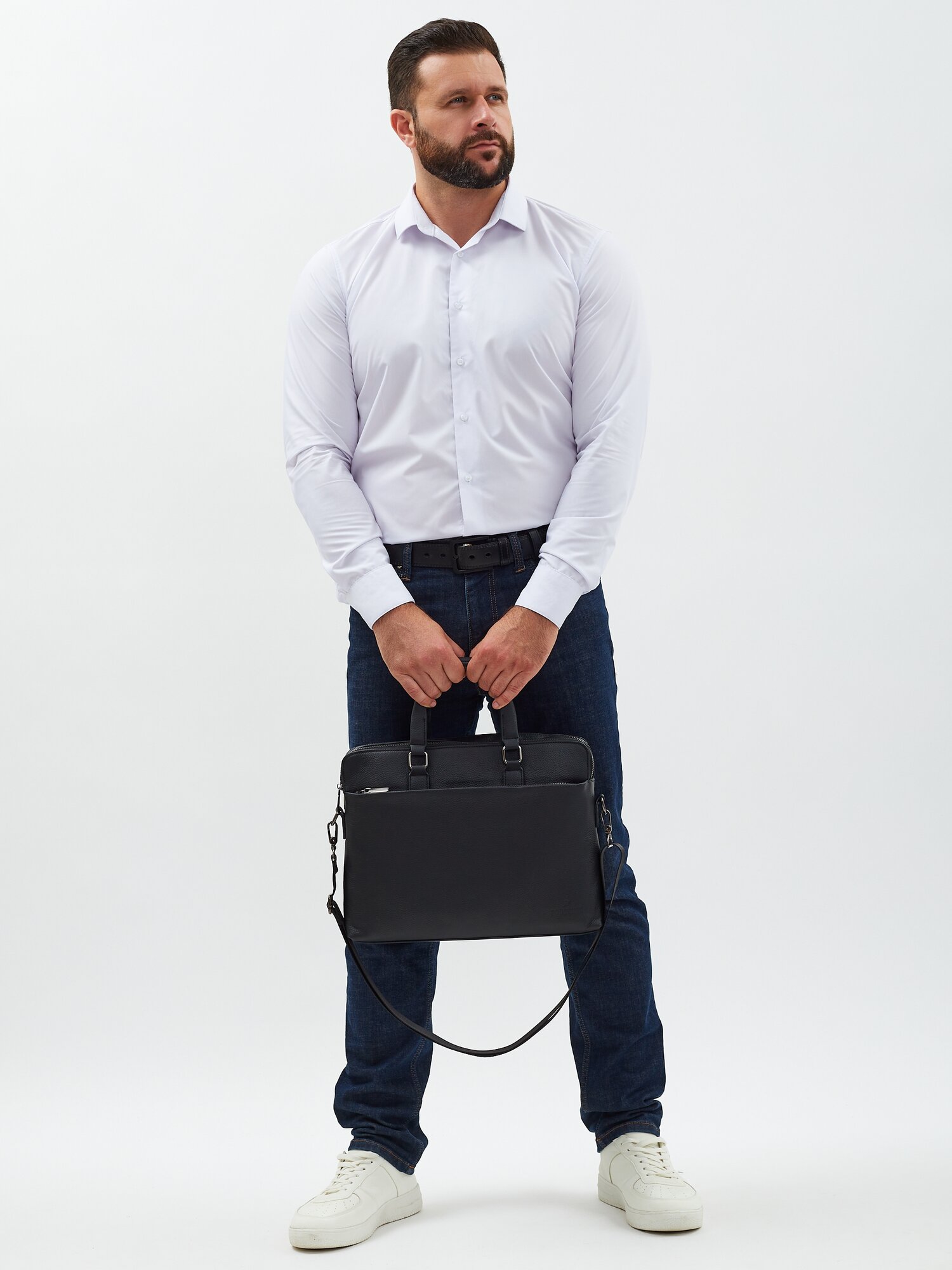 Портфель POUCHMAN, фактура гладкая, черный глянцевый