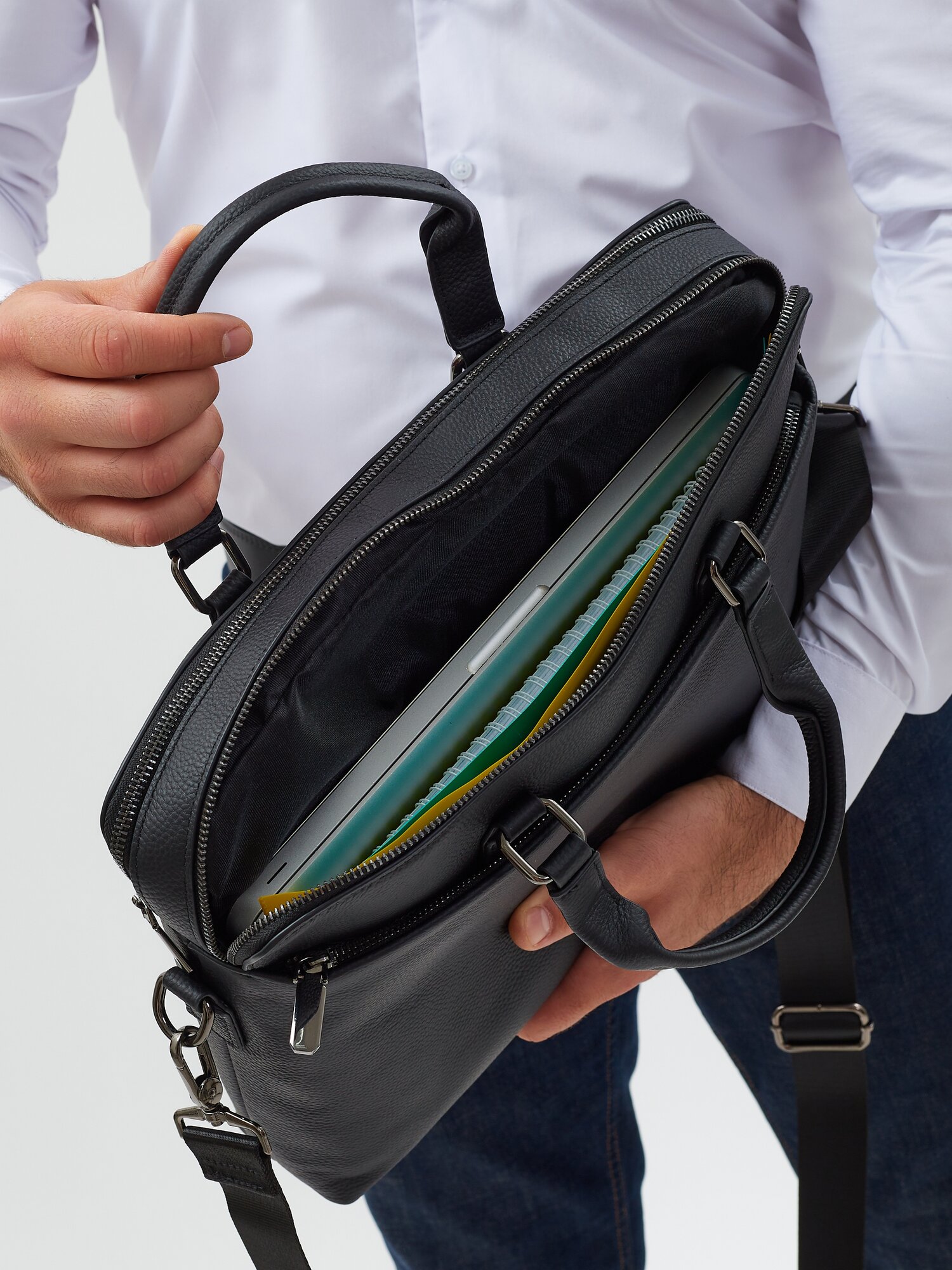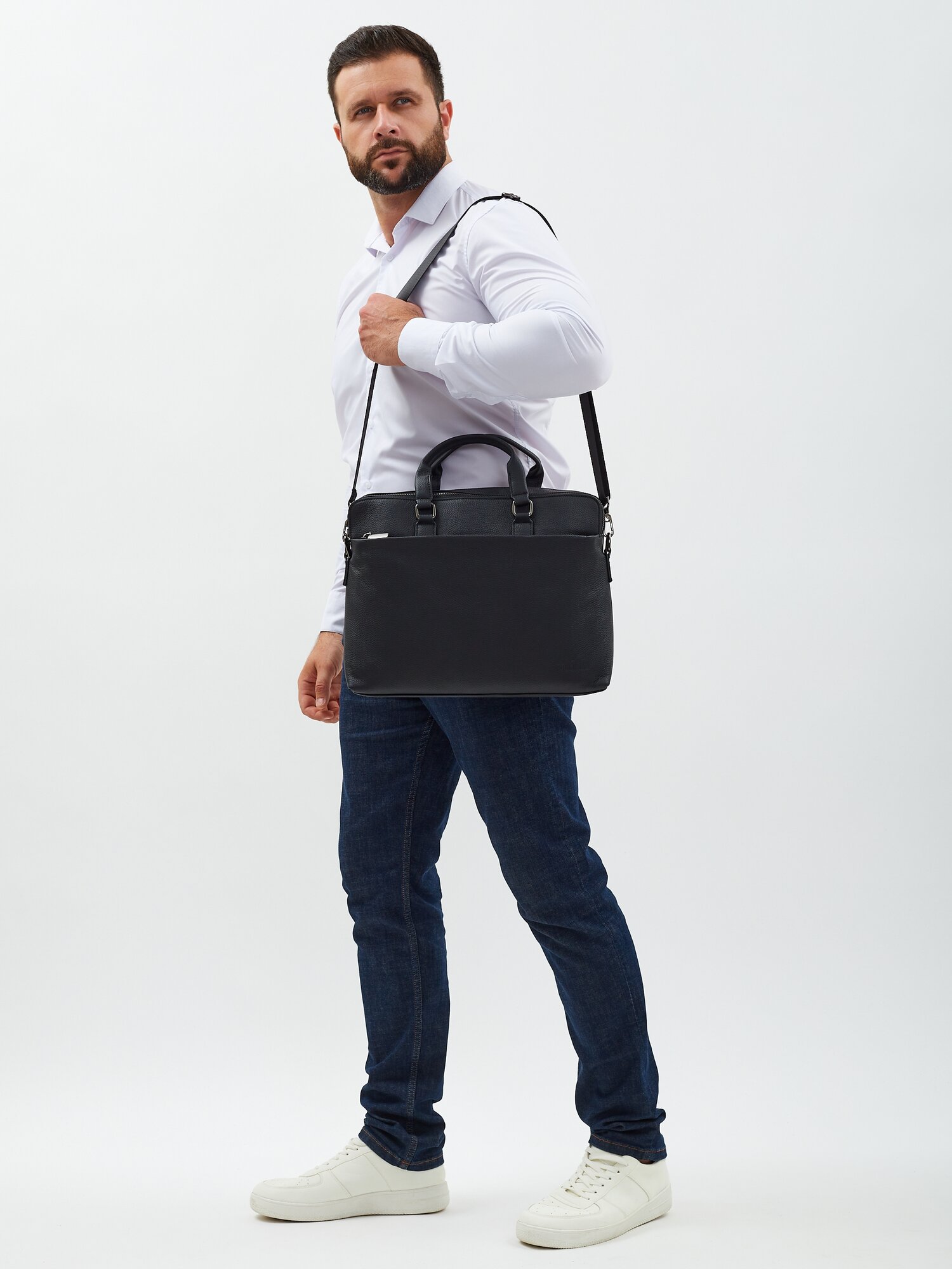 Портфель POUCHMAN, фактура гладкая, black интересное: