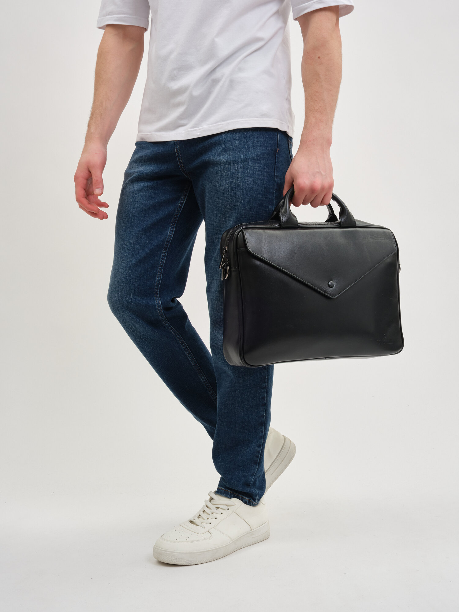 Портфель POUCHMAN, фактура гладкая, черный 28