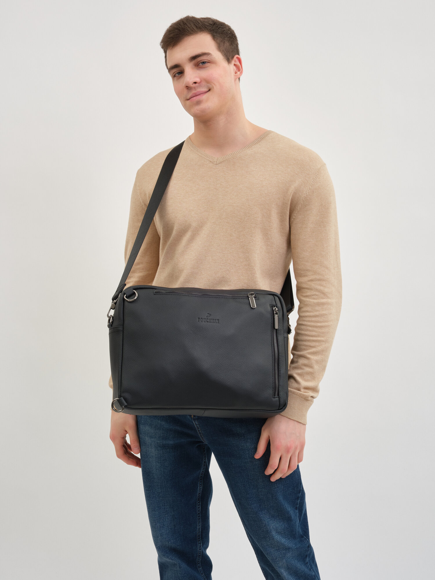 Портфель POUCHMAN, фактура гладкая, черный 28 интересное: