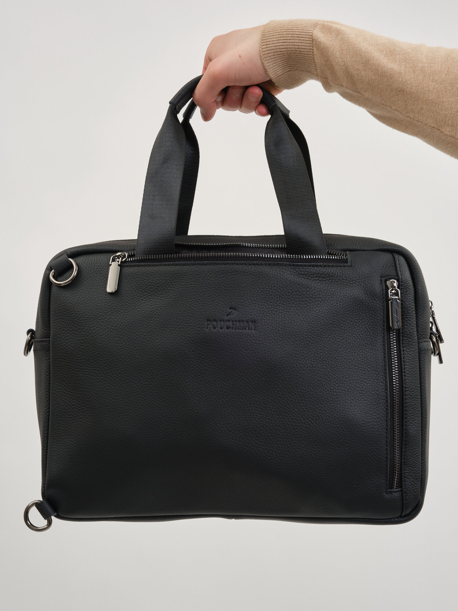 Портфель POUCHMAN, фактура гладкая, черный 02