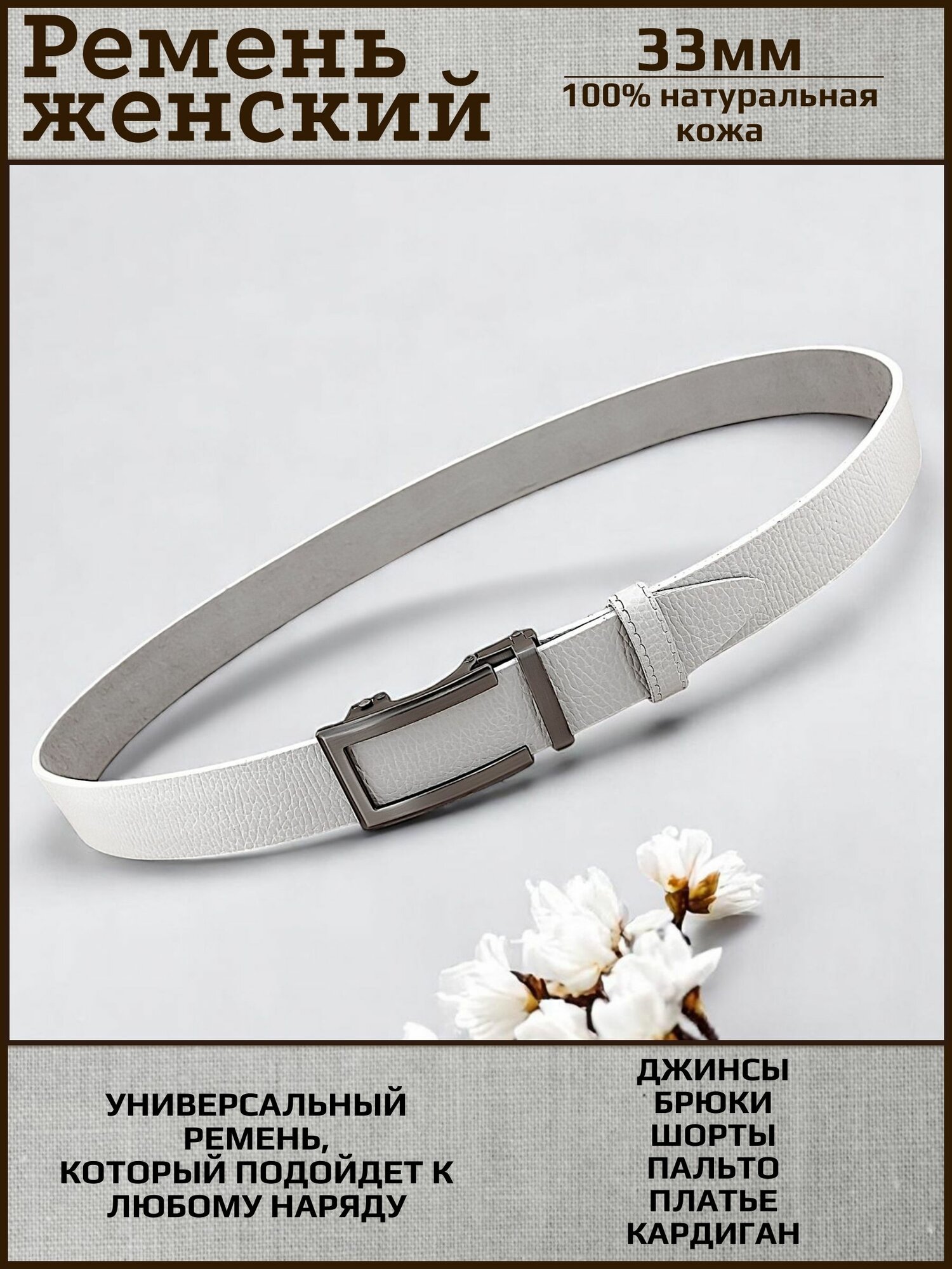 Ремень AksyBelt для женщин, размер 100, белый