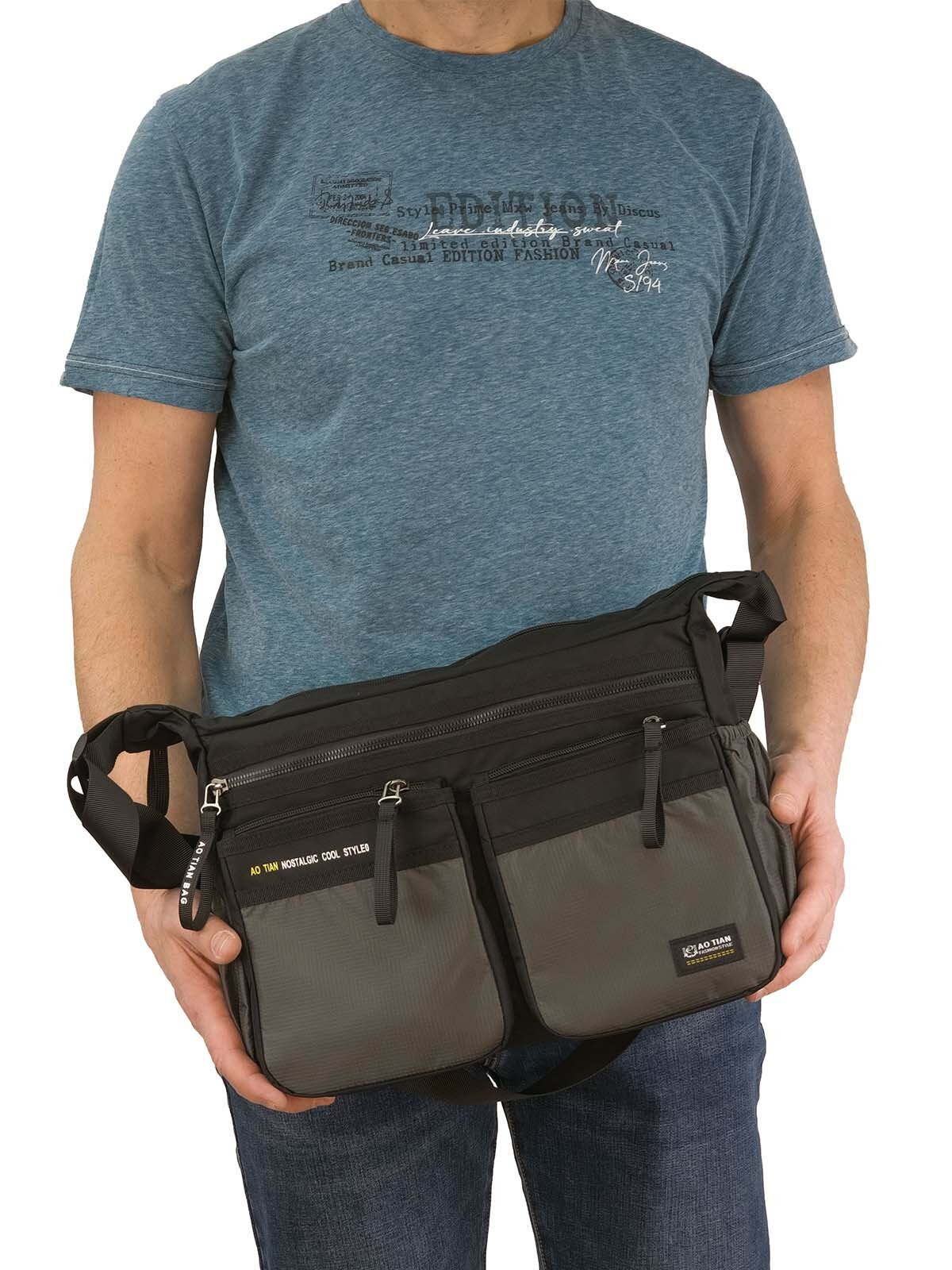 Сумка мессенджер AOTIAN, фактура гладкая, серый интересное: