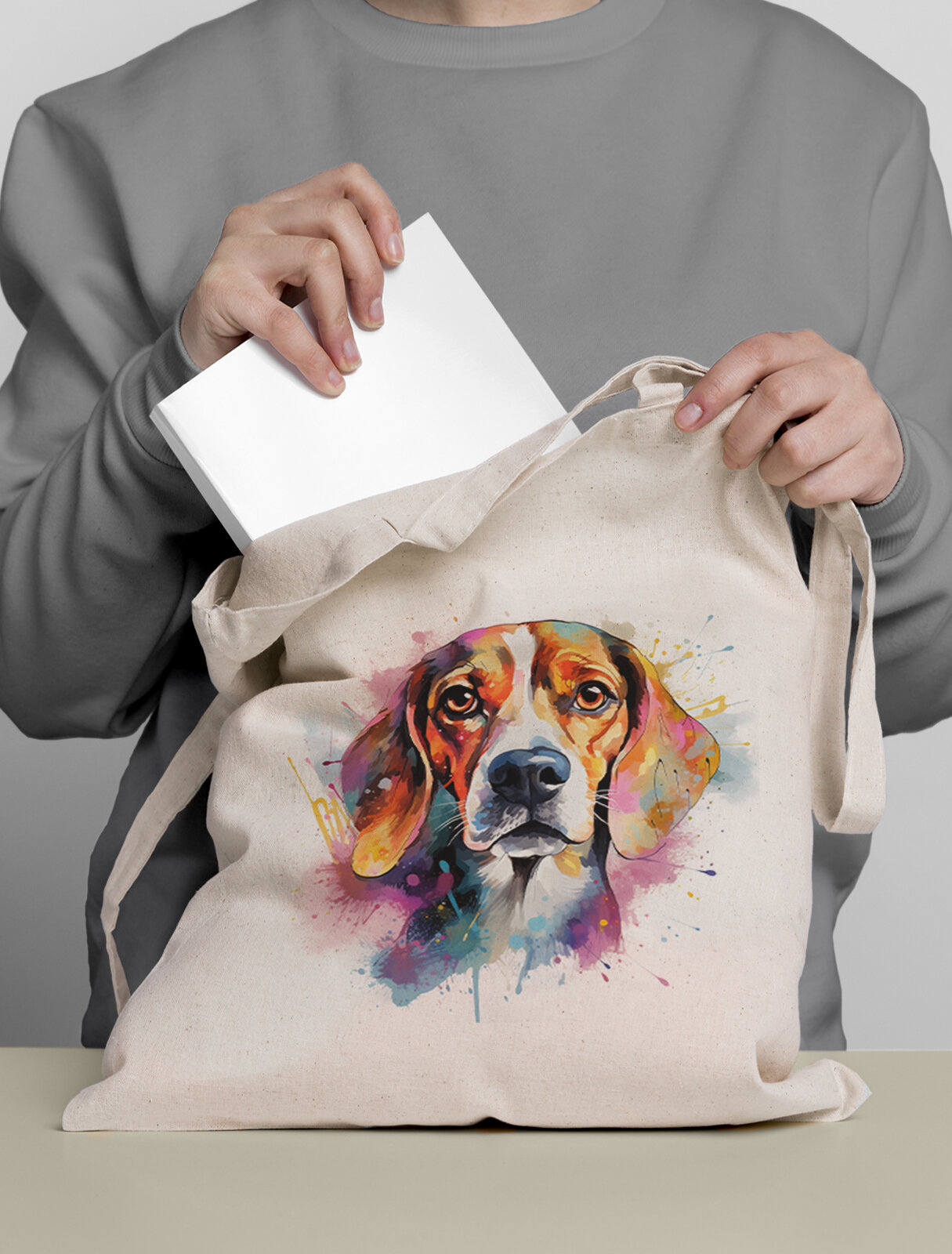 Купить Сумка шоппер Gerasim шоппер с принтом "Бигль ", шопер авоська холщовая с рисунком в подарок, горчичный, желтый