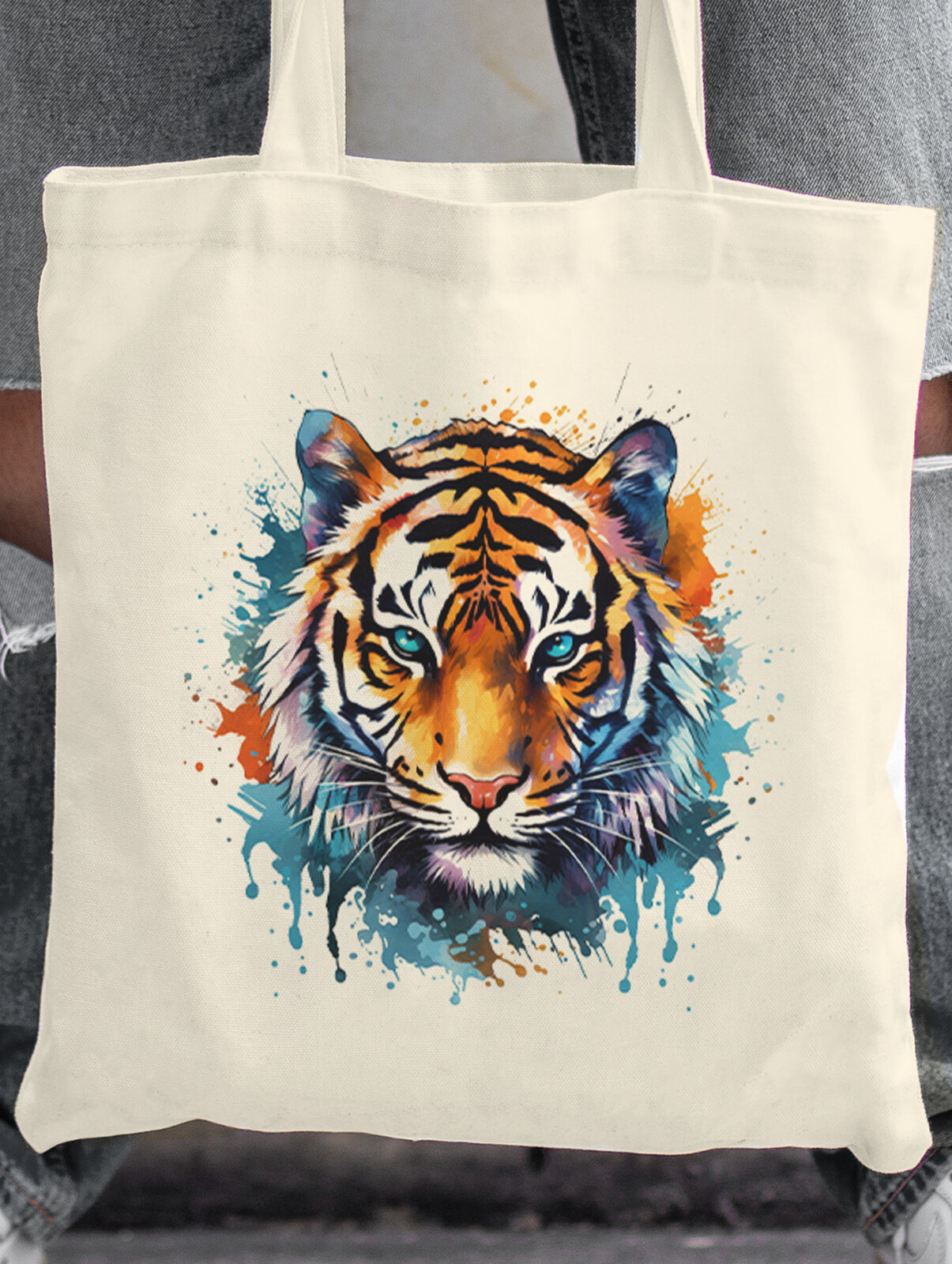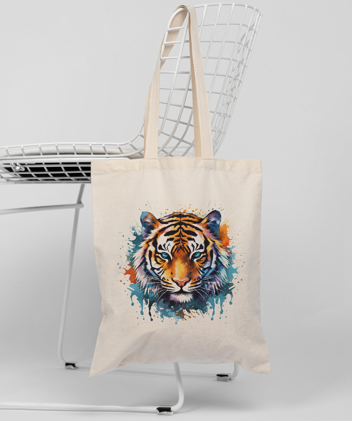 Купить Сумка шоппер Gerasim шоппер с принтом "Амурский тигр", шопер авоська холщовая с рисунком в подарок, голубой/желтый