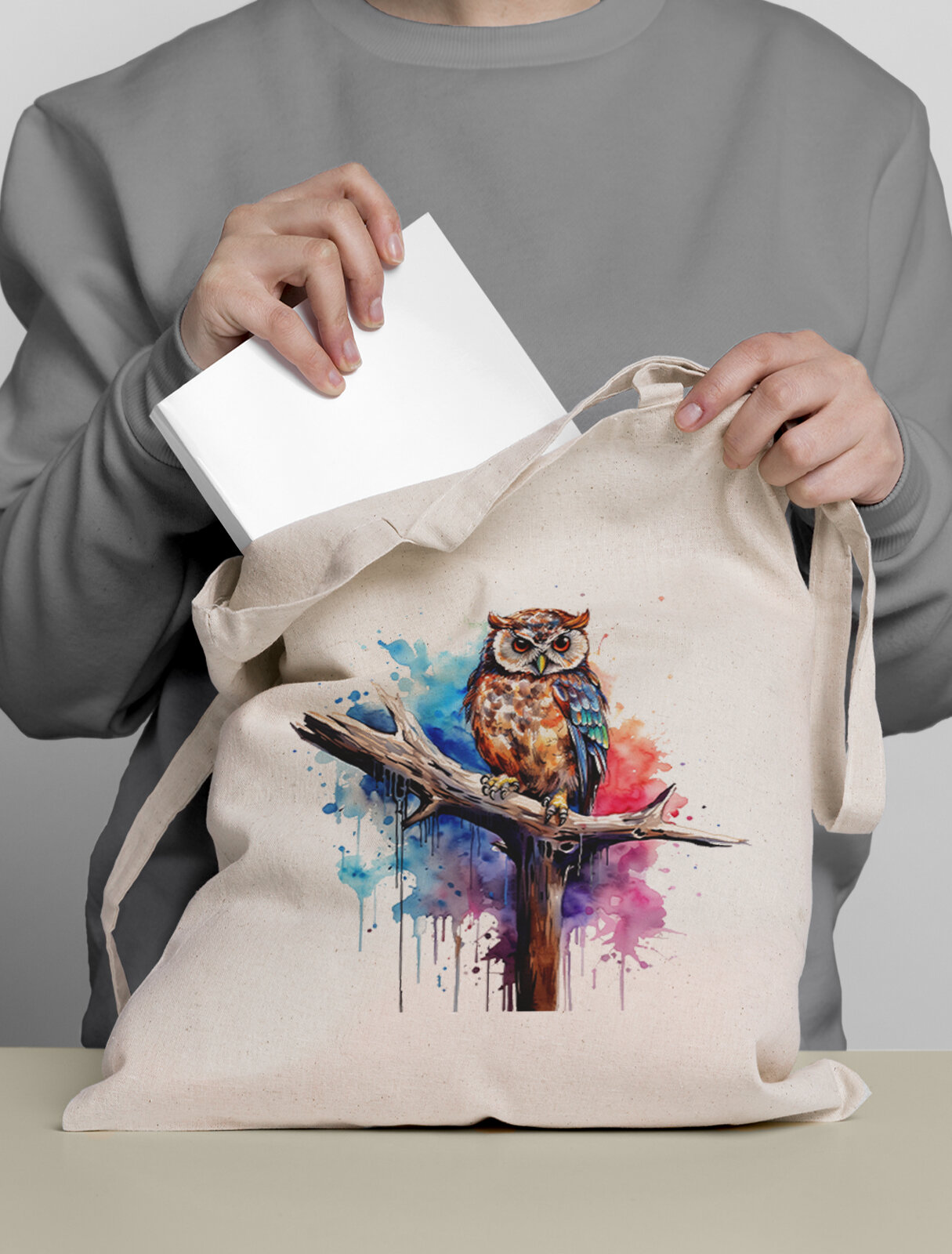 Сумка шоппер Gerasim шоппер с принтом "Совушка", шопер авоська холщовая с рисунком в подарок, коричневый