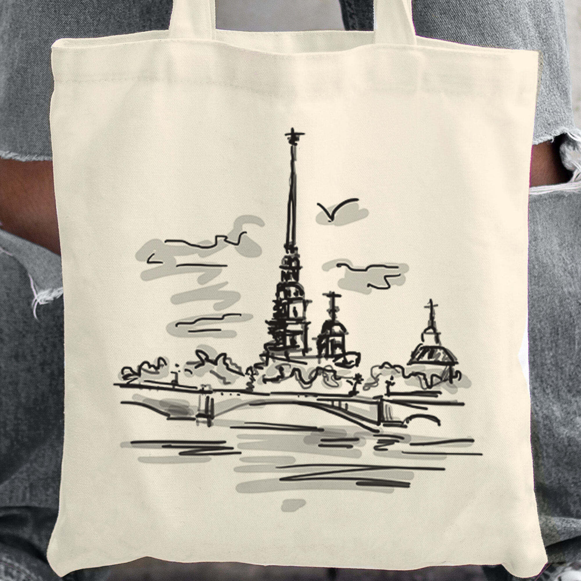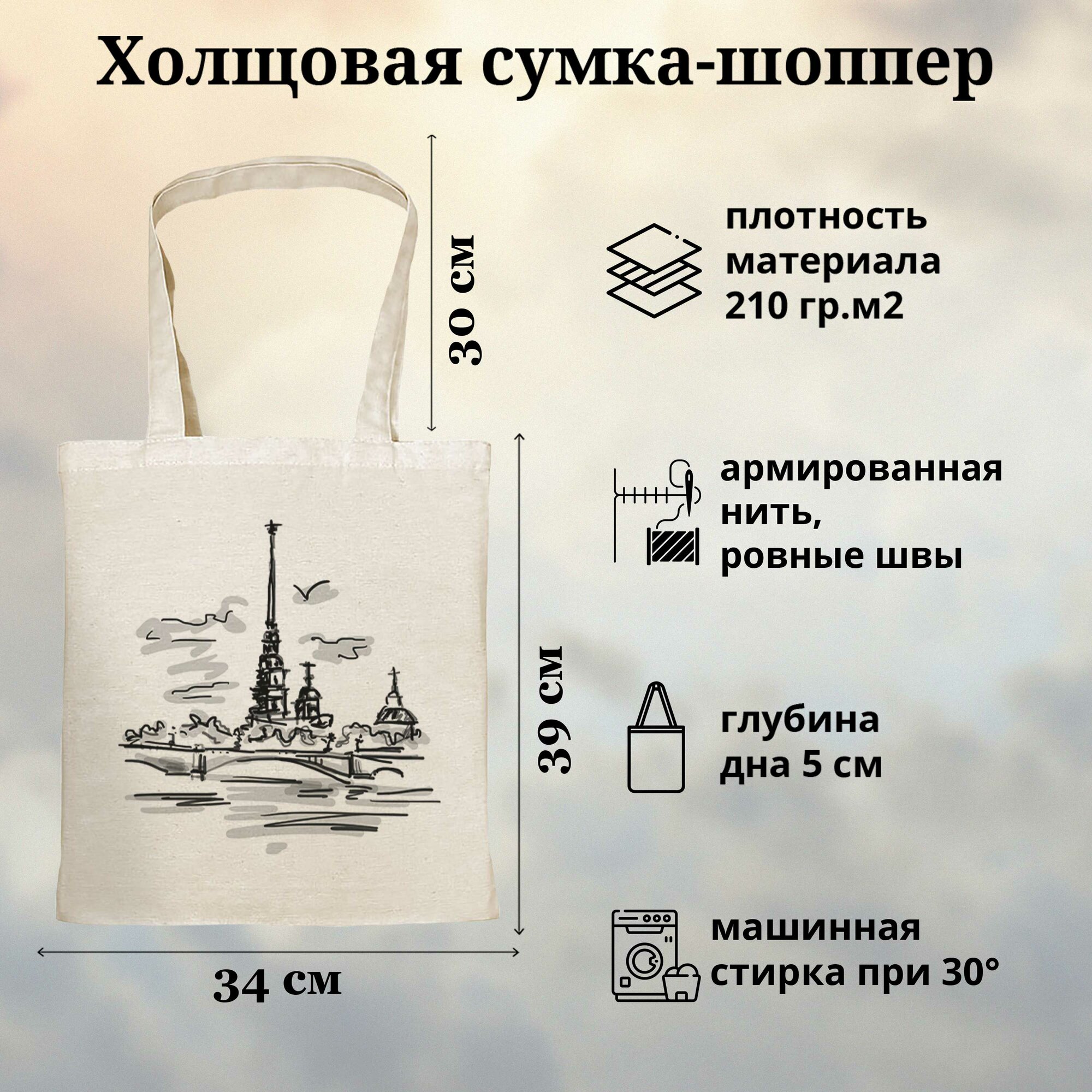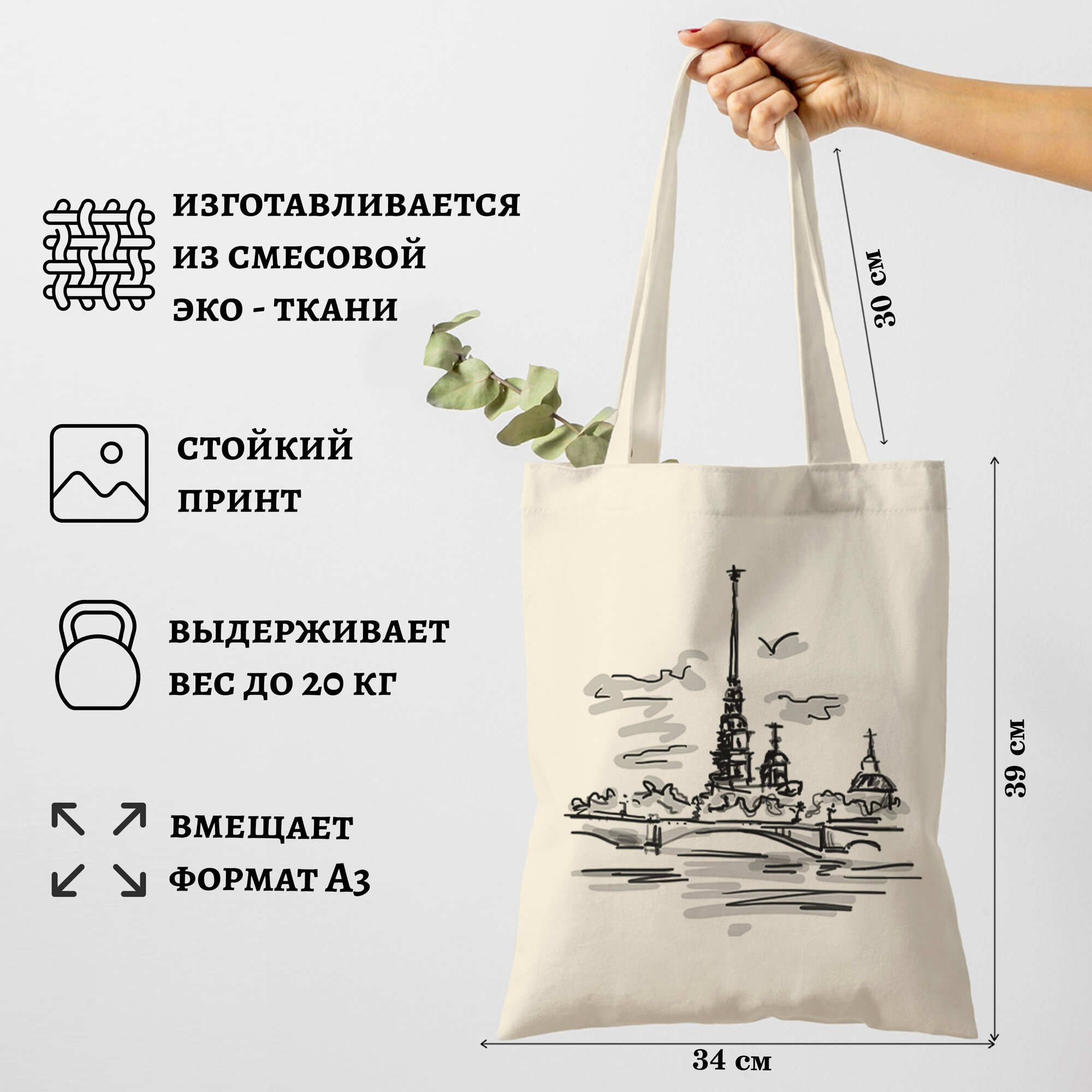Сумка шоппер Gerasim шоппер с принтом "Петропавловская крепость", шопер авоська холщовая с рисунком в подарок, бежевый интересное:
