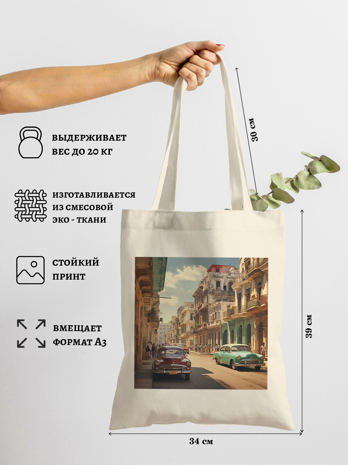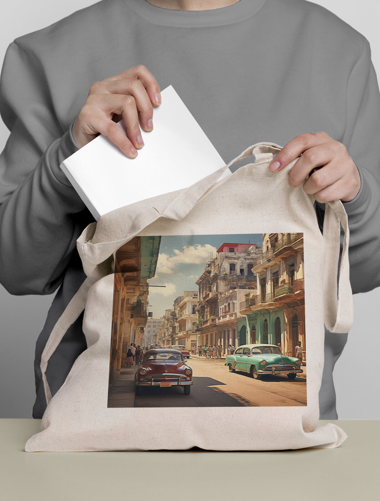 Сумка шоппер Gerasim шоппер с принтом "Улица Кубы", шопер авоська холщовая с рисунком в подарок, желтый, зеленый, голубой