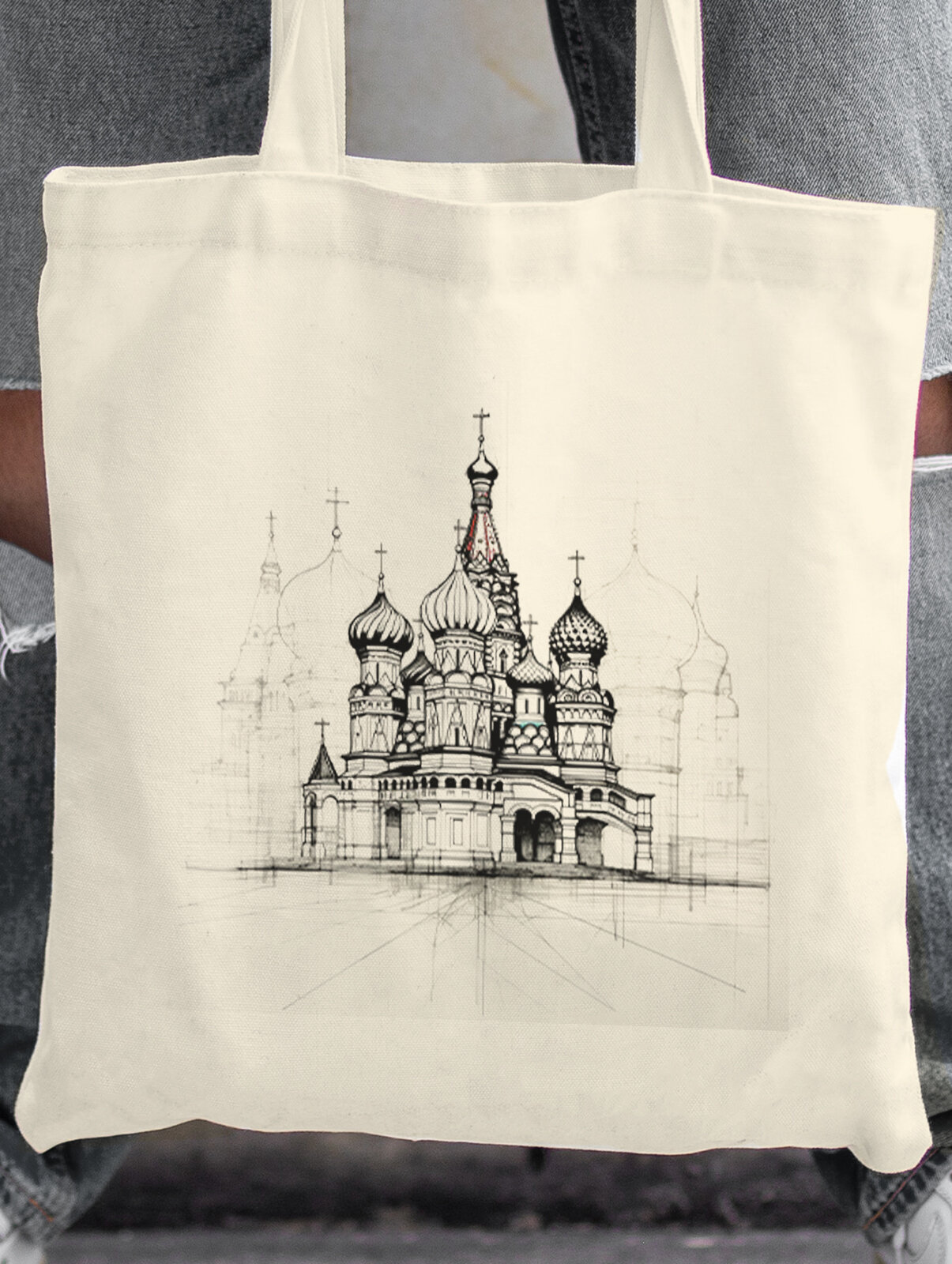 СохранитьСумка шоппер Gerasim шоппер с принтом "Собор Василия Блаженного ", шопер авоська холщовая с рисунком в подарок, черный интересное: