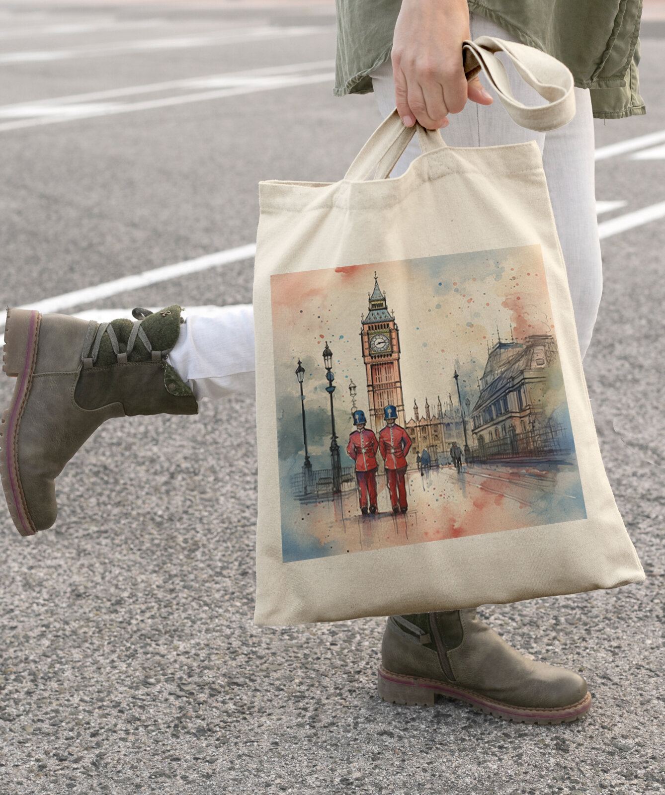 Купить Сумка шоппер Gerasim шоппер с принтом "Смена караула у башни Биг Бен", шопер авоська холщовая с рисунком в подарок, красный/синий