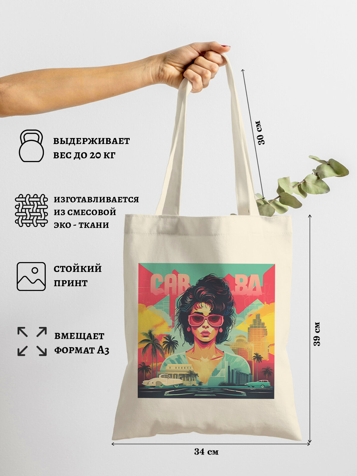 Сумка шоппер Gerasim шоппер с принтом "Кубинская девушка", шопер авоська холщовая с рисунком в подарок, коралловый