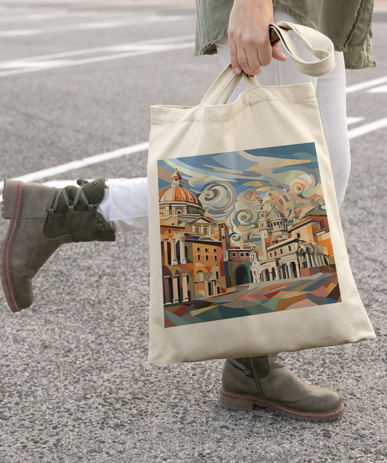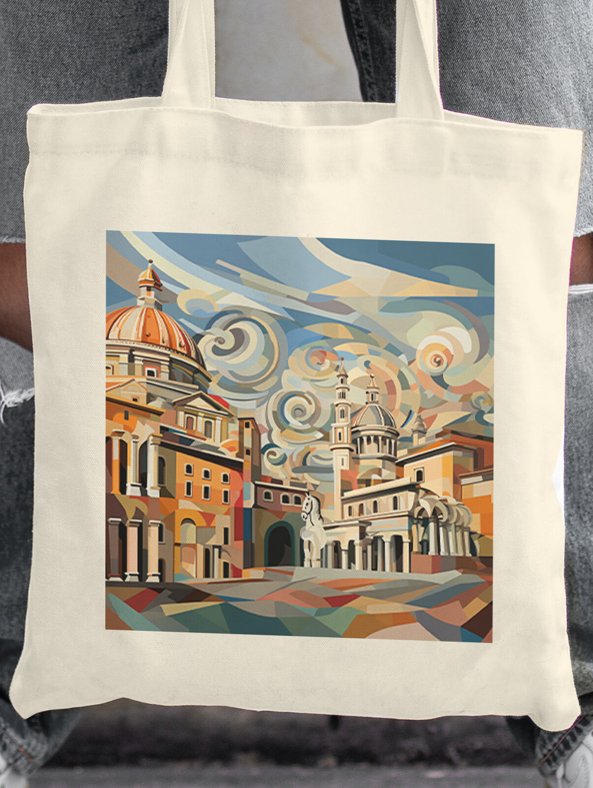 Сумка шоппер Gerasim шоппер с принтом "Вечерний Рим", шопер авоська холщовая с рисунком в подарок, коричневый