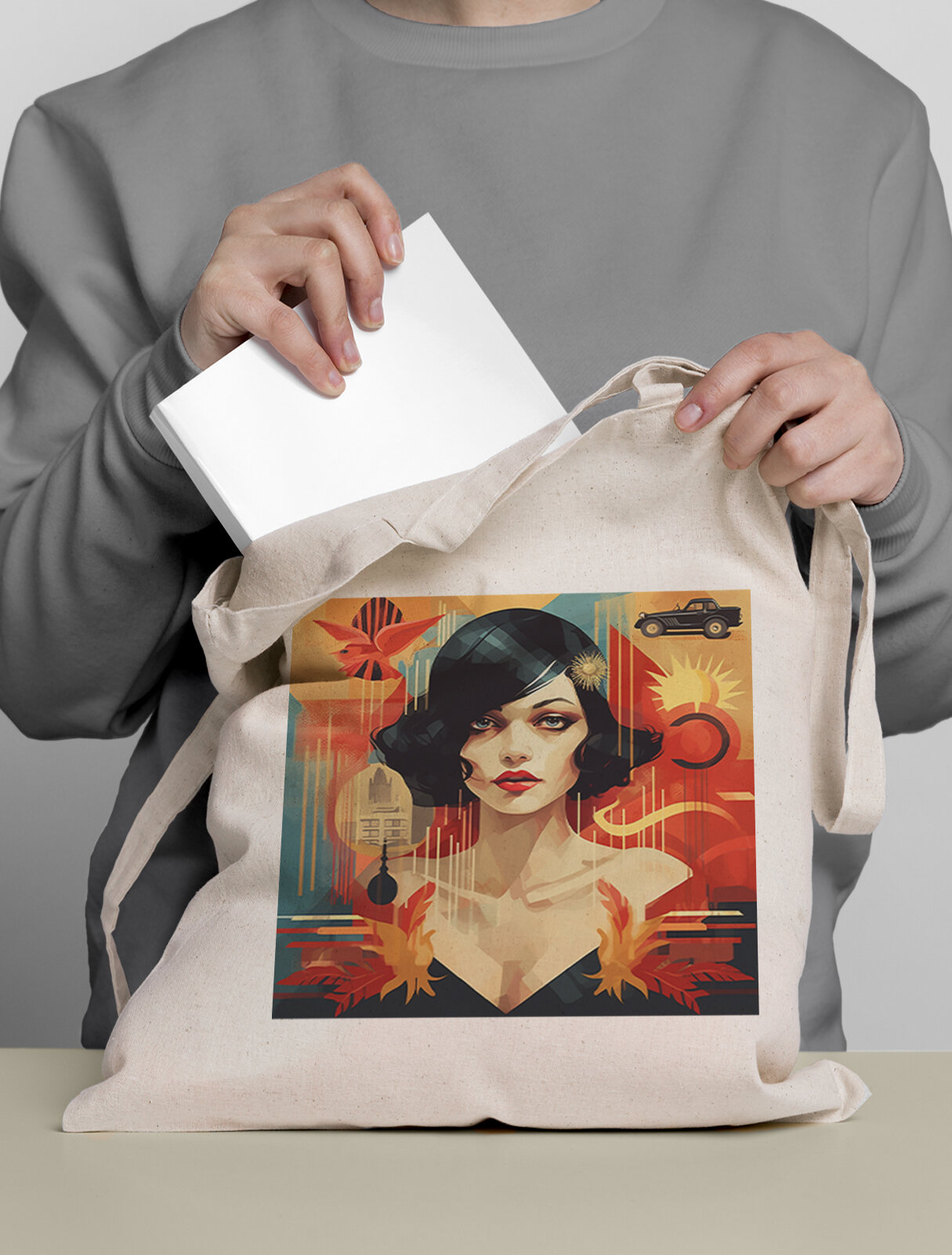 Сумка шоппер Gerasim шоппер с принтом "О, Париж", шопер авоська холщовая с рисунком в подарок, beige